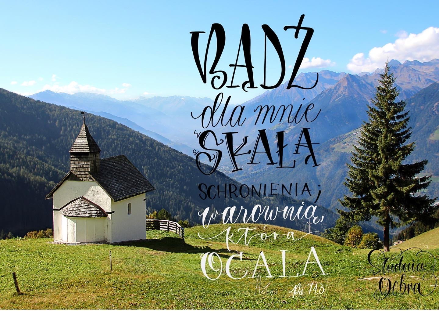 Idealny jako prezent na rózne okazje. Przedstawia słowa "Bądź dla mnie skałą schronienia, warownią, która ocala" (Ps 71,3), napisane w ozdobnej, nowoczesnej formie wraz z przeznaczonym zdjęciem.