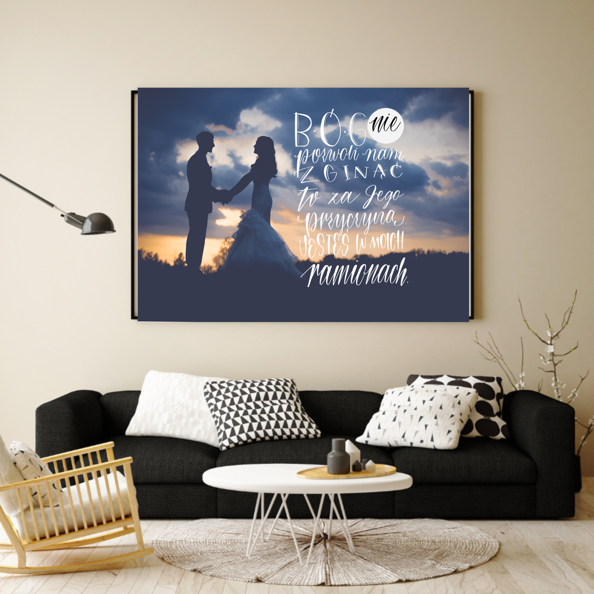 Zawiera autorski CYTAT: "Bóg nie pozwoli nam zginąć. To za Jego przyczyną, jesteś w moich ramionach". Napis w ciekawej formie, na tle pary kochającej się.