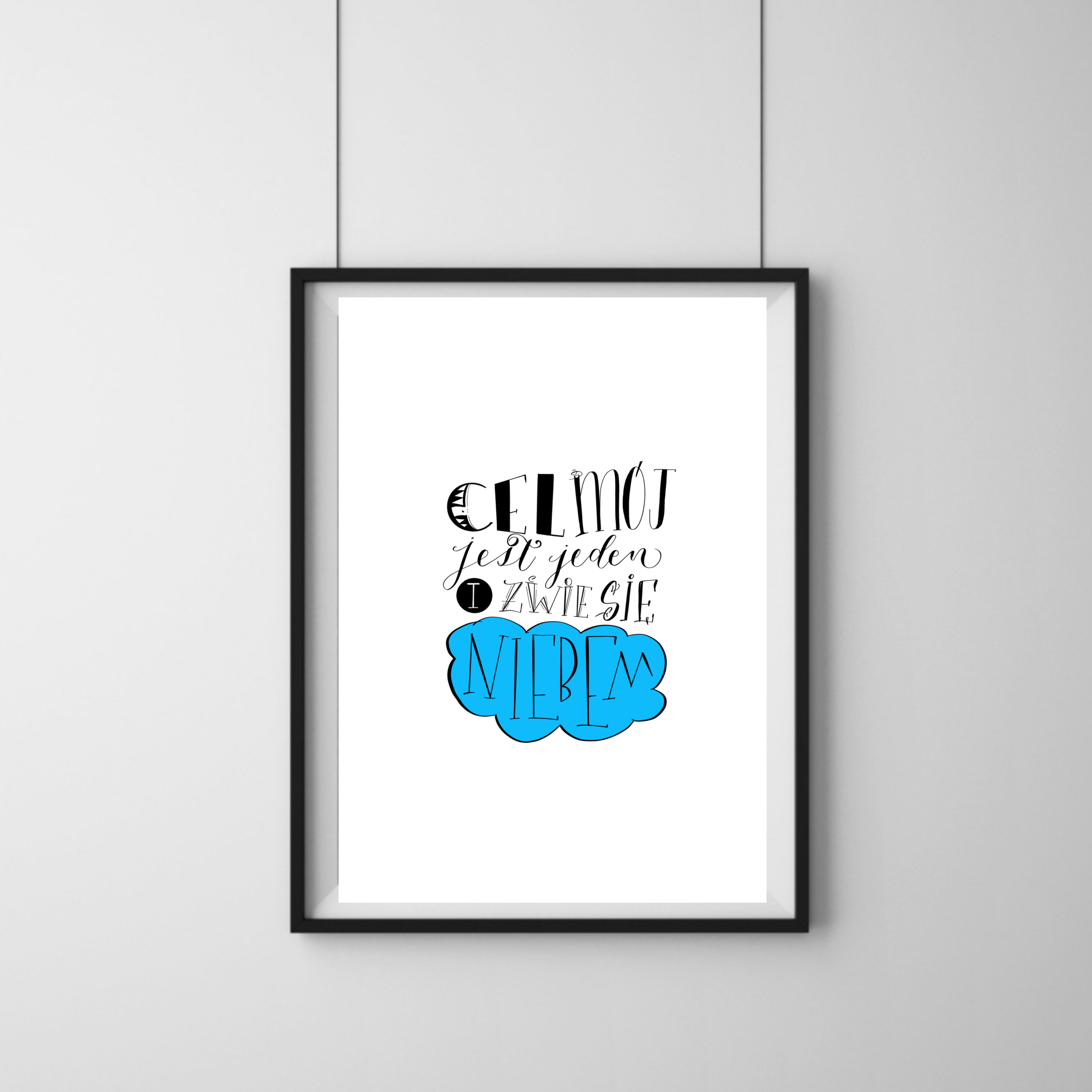 Zawiera CYTAT: "Cel mój jest jeden i zwie się niebem". Napis w ciekawej formie.