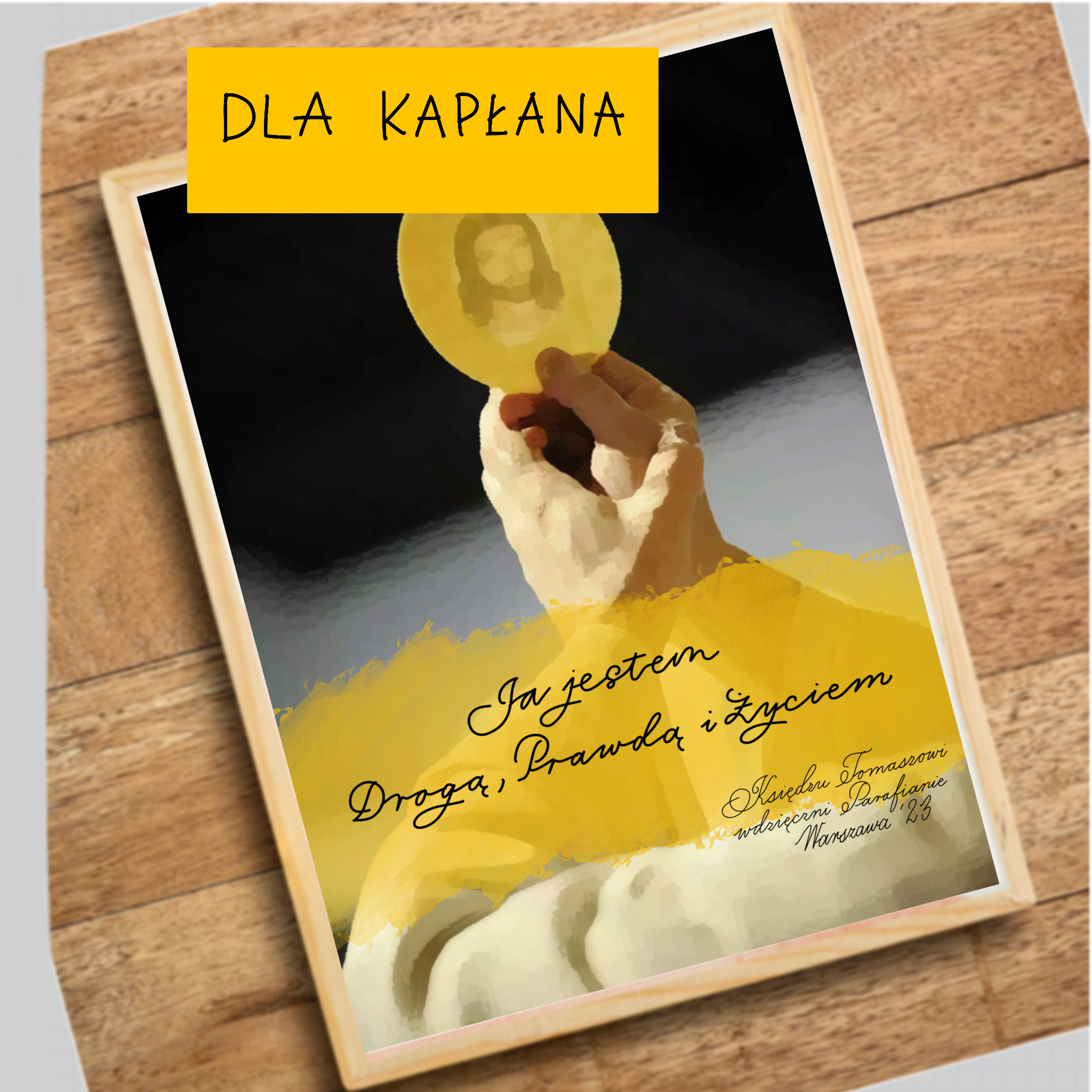 Przedstawia grafikę poświęconą Eucharystii wraz z biblijnym cytatem: "Ja jestem Drogą, Prawdą i Życiem". Doskonały, jako prezent dla kapłana na Wielki Czwartek.