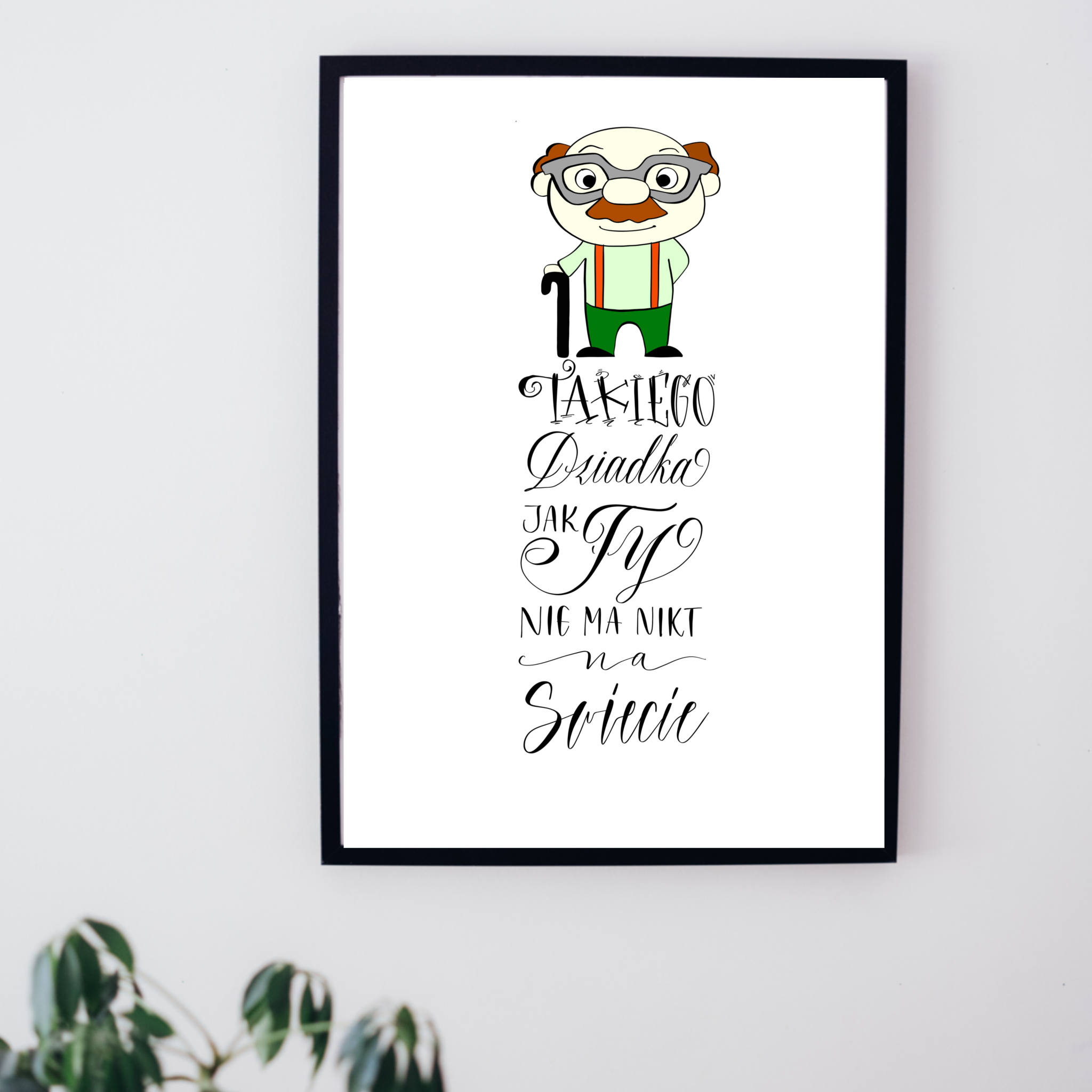Idealny prezent na Dzień Dziadka. Zawiera grafikę z wizerunkiem dziadka oraz napis ozdobnym pismem: "Takiego Dziadka, jak Ty nie ma nikt świecie":)