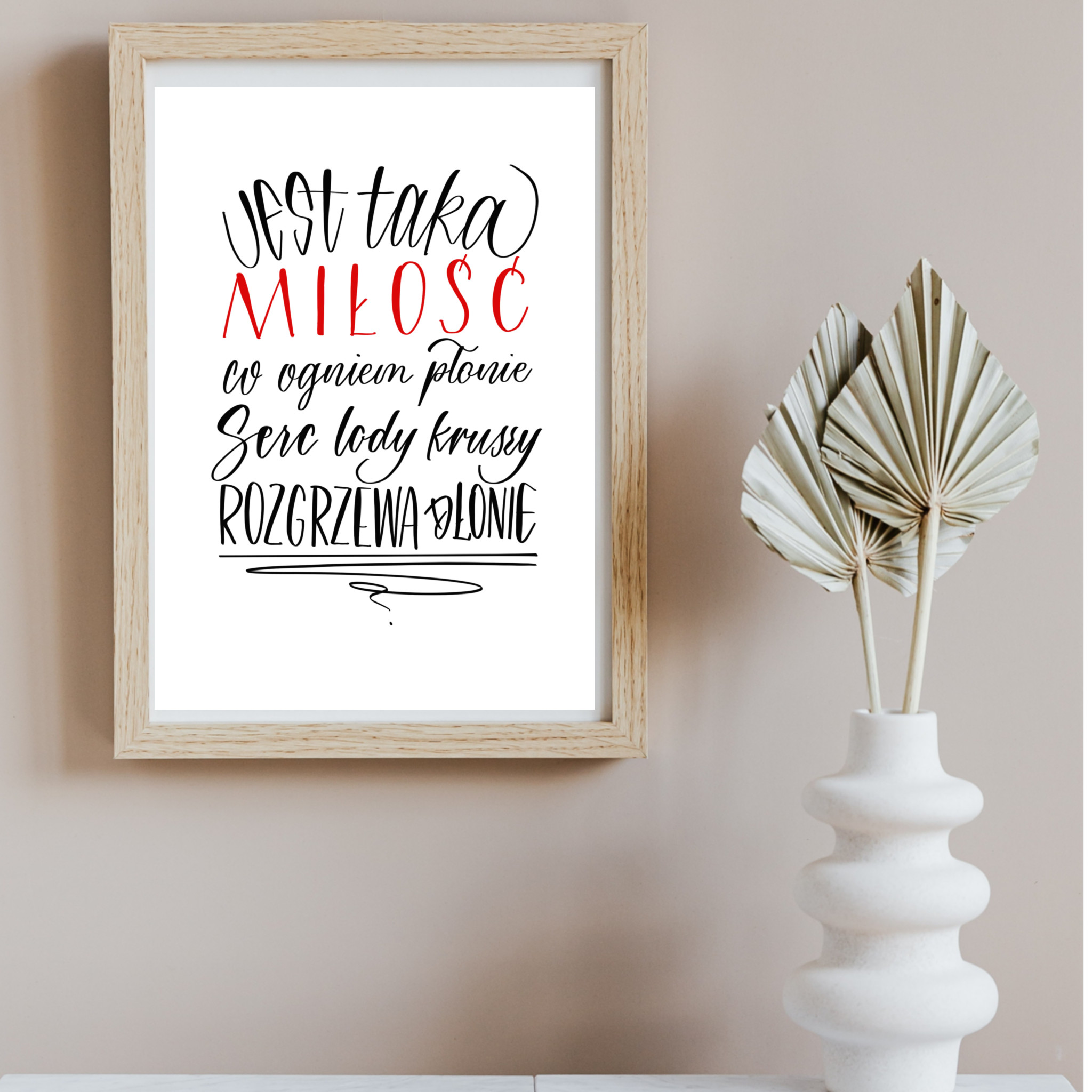 Zawiera CYTAT: "Jest taka Miłość, co ogniem płonie; serc lody kruszy, rozgrzewa dłonie".