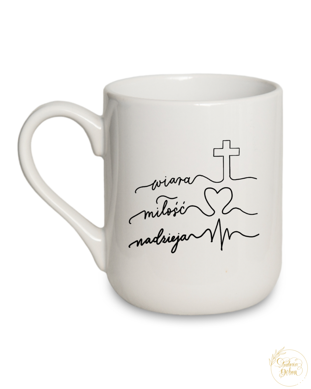 Na drugiej stronie znajduje się minimalistyczna grafika z krzyżem i sercem oraz słowami: