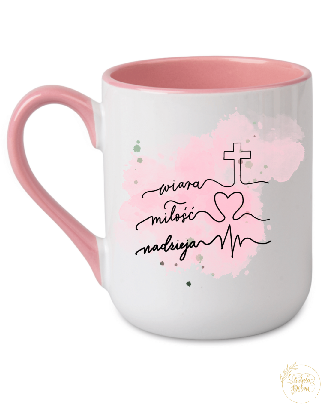 Na drugiej stronie znajduje się minimalistyczna grafika z krzyżem i sercem oraz słowami: