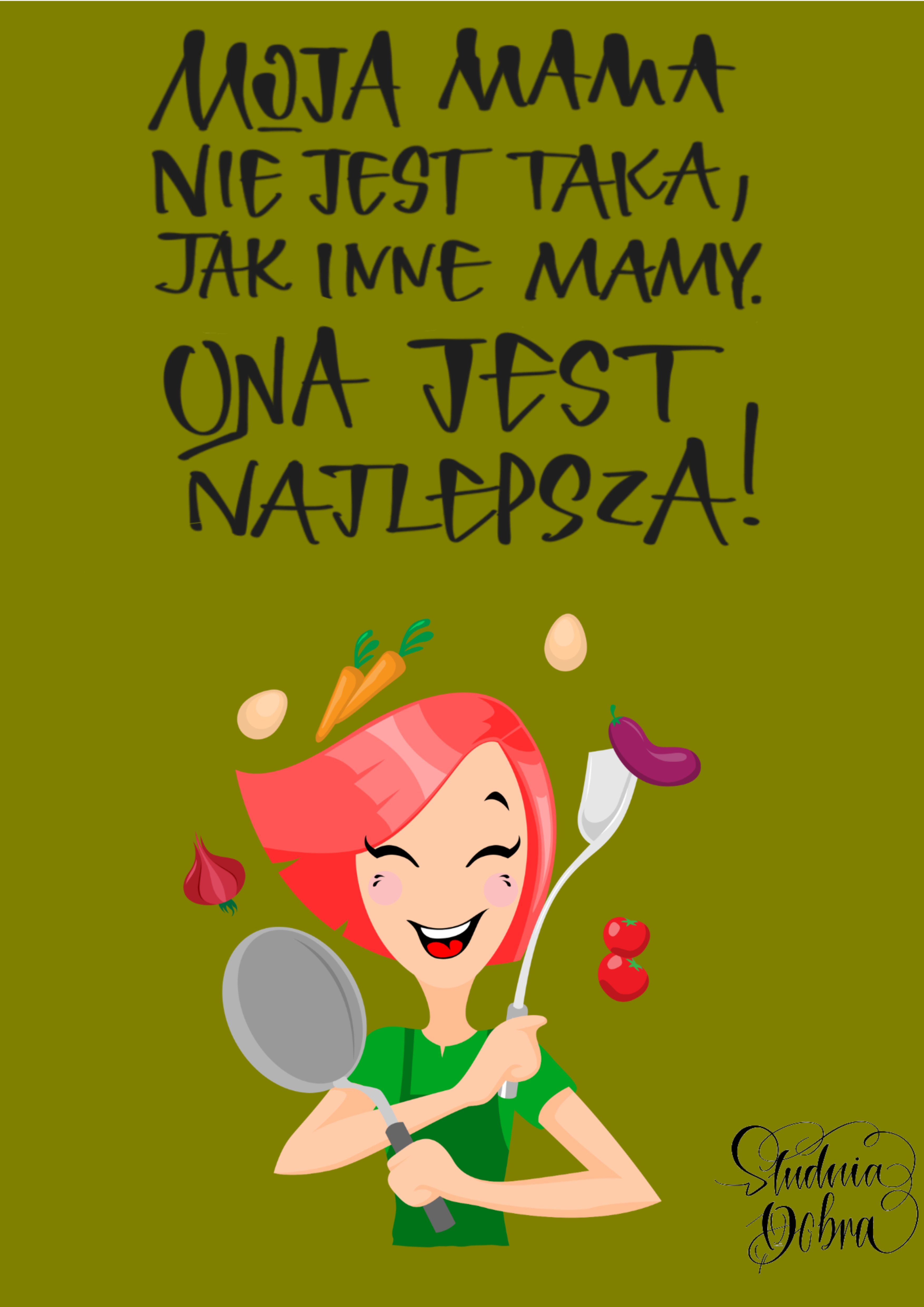 Idealny jako prezent na Dzień Matki. Przedstawia słowa "Moja Mama nie jest taka, jak inne mamy. Ona jest najlepsza", napisane w ozdobnej, nowoczesnej formie. Z okazyjną grafiką.