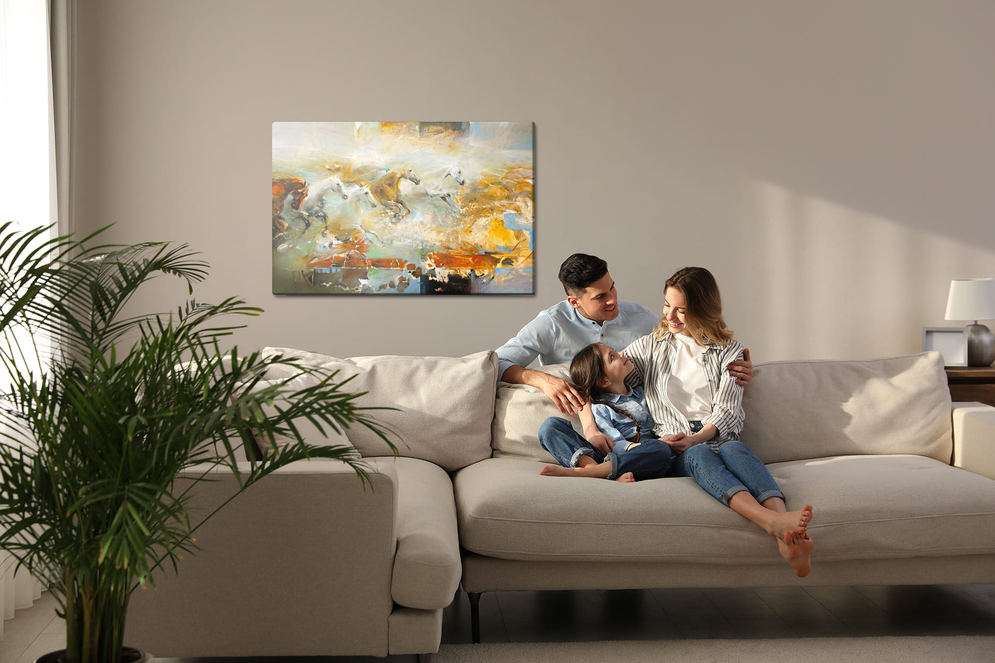 Fotograficzna jakość wydruku, wysokiej jakości płótno naciągnięte na prawdziwą drewnianą ramę. Bezpiecznie zapakowane, gotowe do powieszenia na ścianie. Drukowane w ekologicznej, bezwonnej i w pełni bezpiecznej technologii HP Latex.