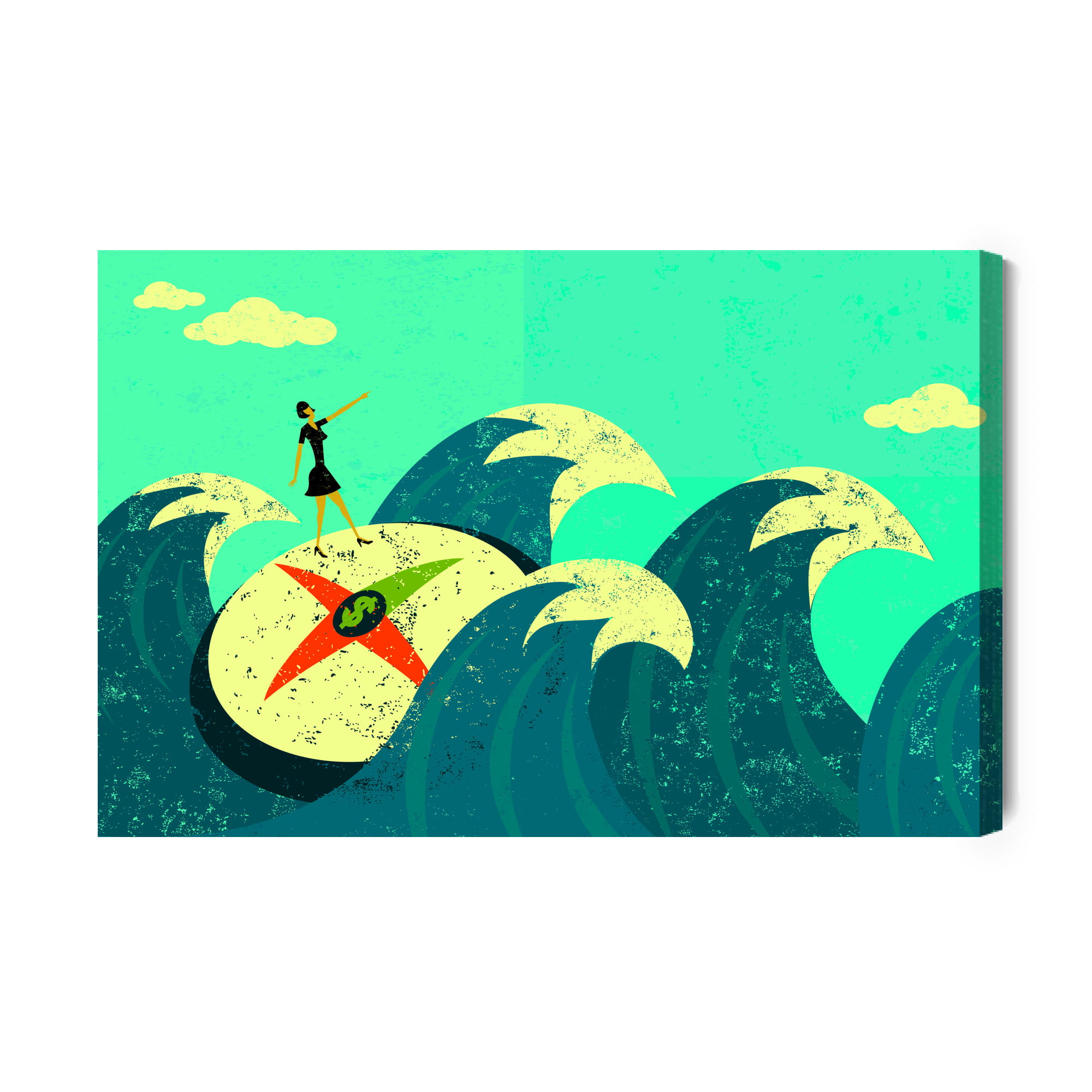 Obraz Na Płótnie Kobieta Na Tarczy Wśród Starych Fal