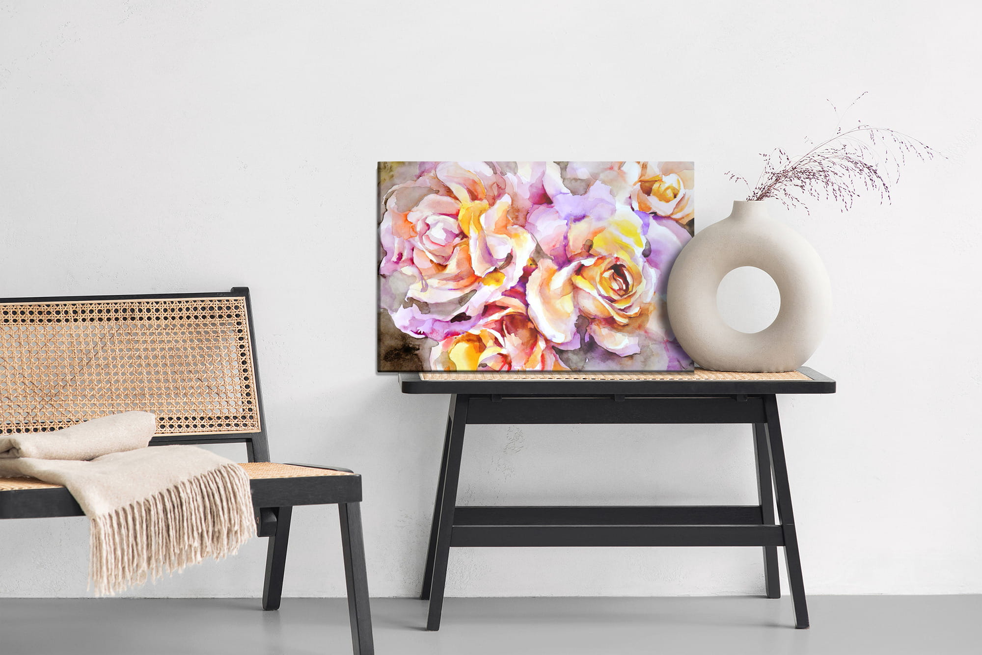 Obraz Na Płótnie Kolorowe Kwiaty Róż Malowane Akwarelą