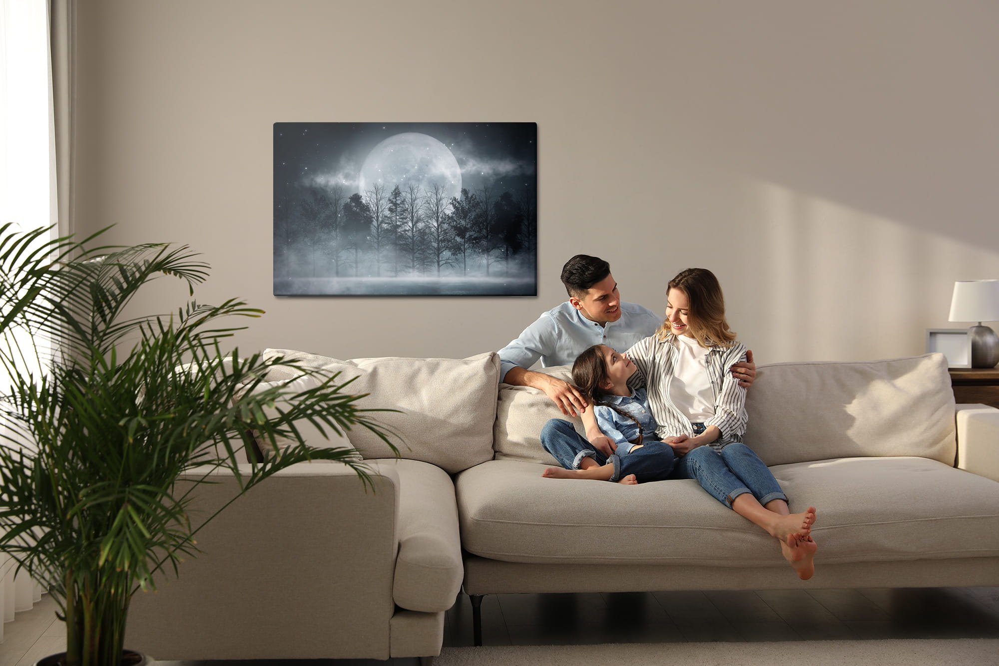 Obraz Na Płótnie Księżyc W Pełni W Zamglonym Lesie