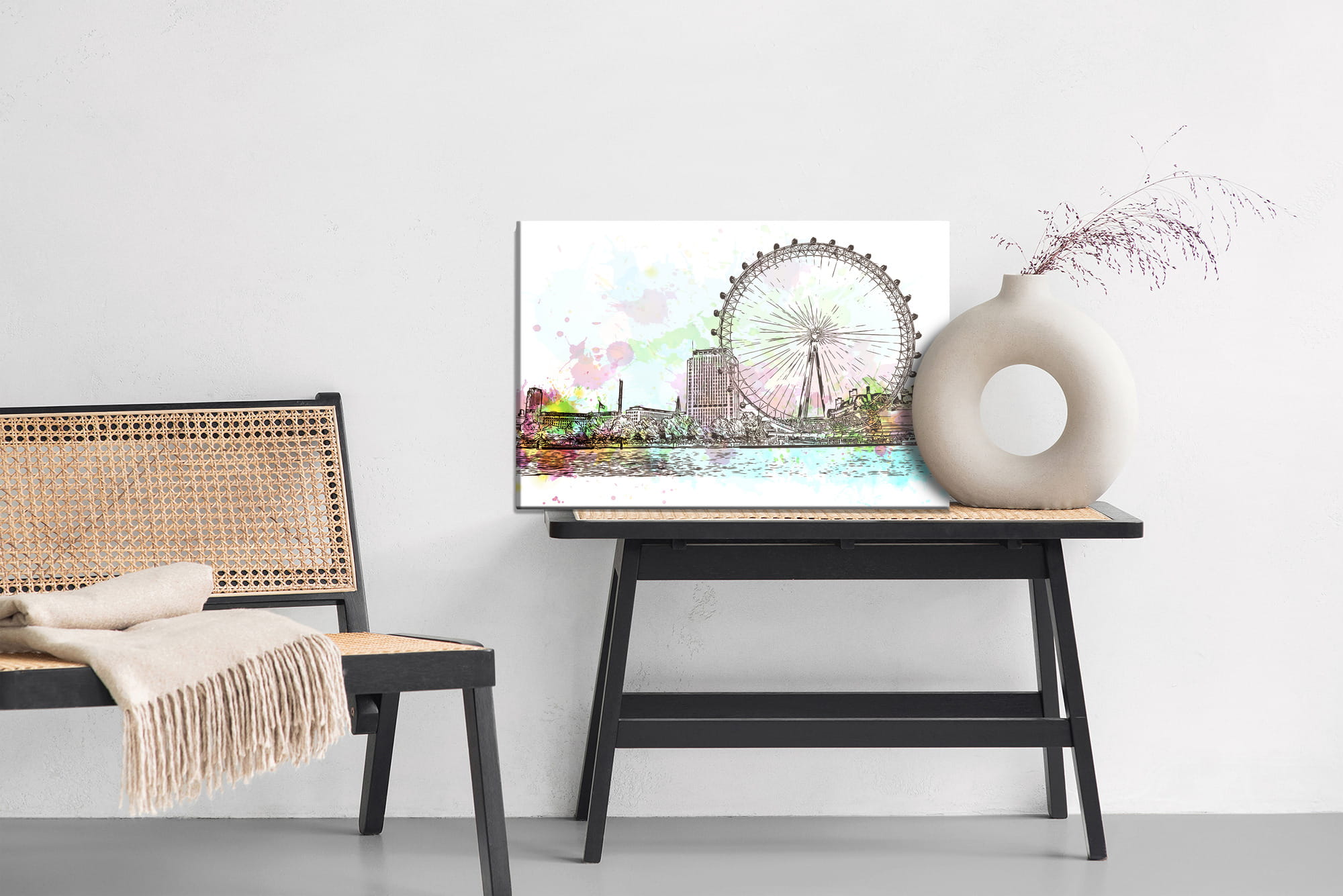 Obraz Na Płótnie London Eye Malowany Akwarelą