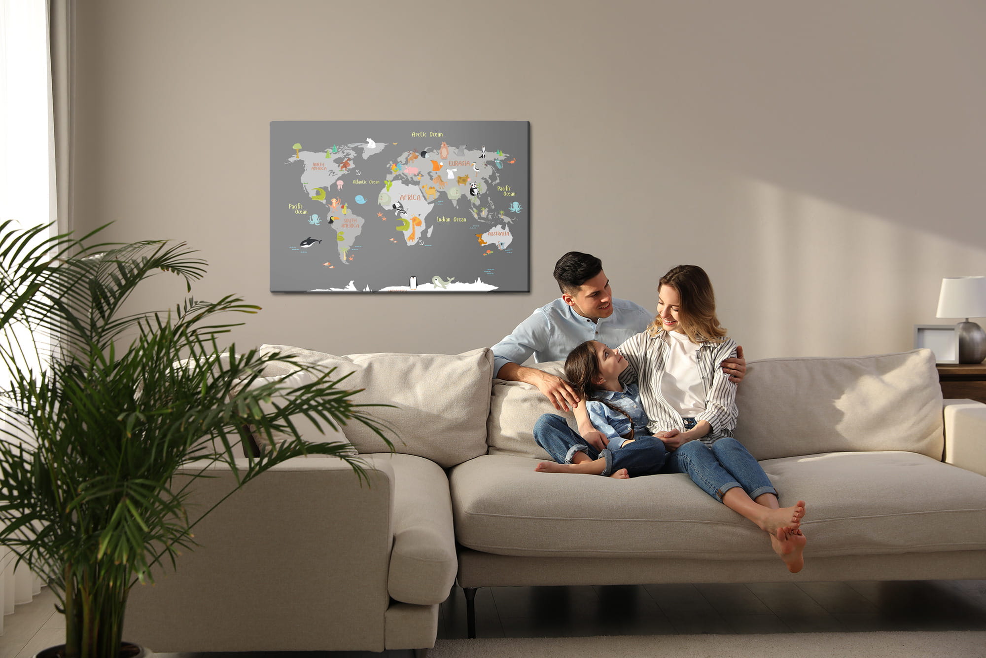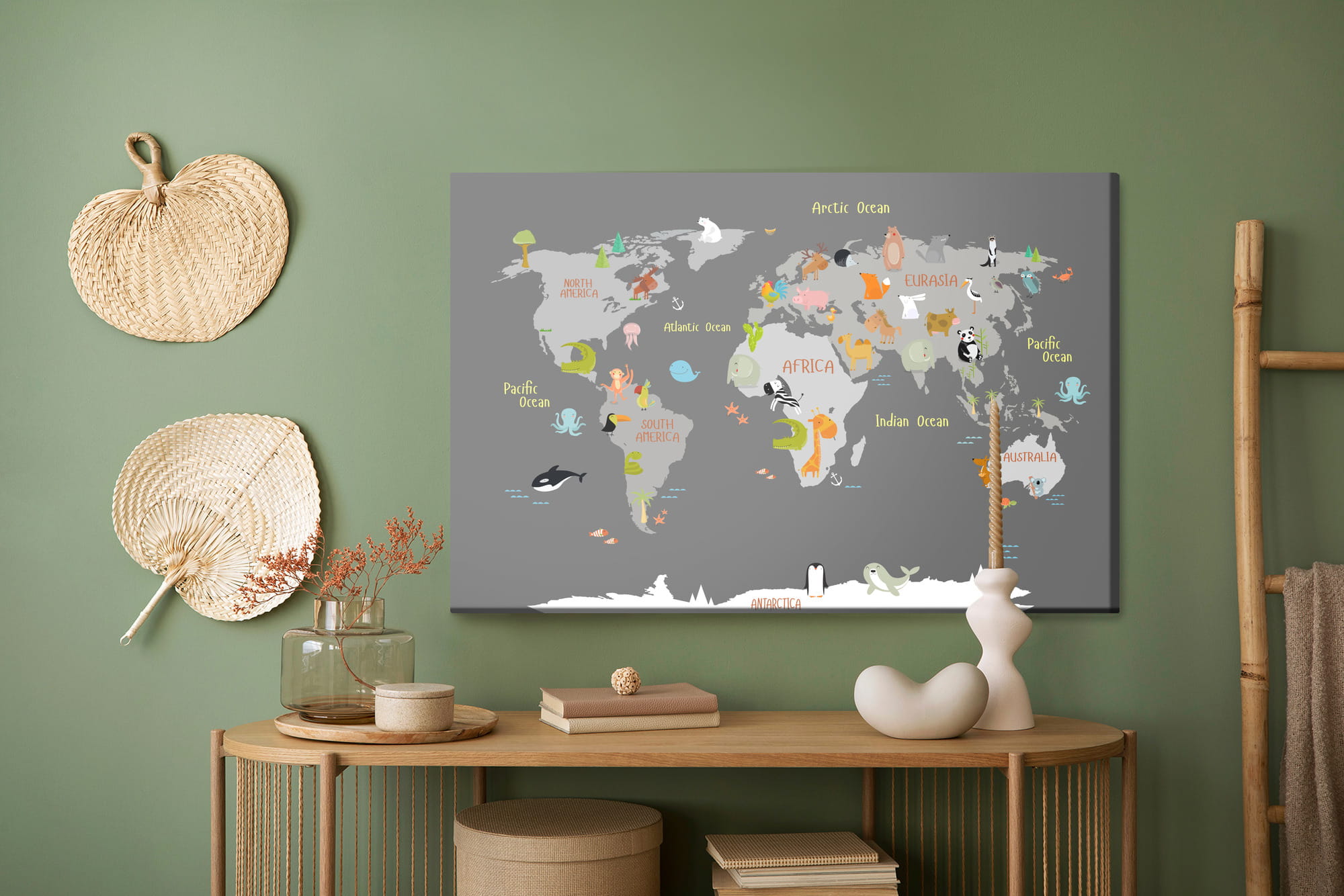 Obraz Na Płótnie Mapa Świata Ze Zwierzątkami
