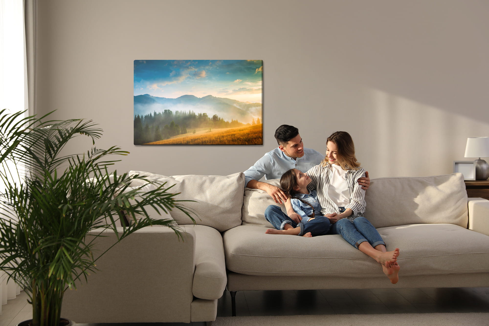 Fotograficzna jakość wydruku, wysokiej jakości płótno naciągnięte na prawdziwą drewnianą ramę. Bezpiecznie zapakowane, gotowe do powieszenia na ścianie. Drukowane w ekologicznej, bezwonnej i w pełni bezpiecznej technologii HP Latex.