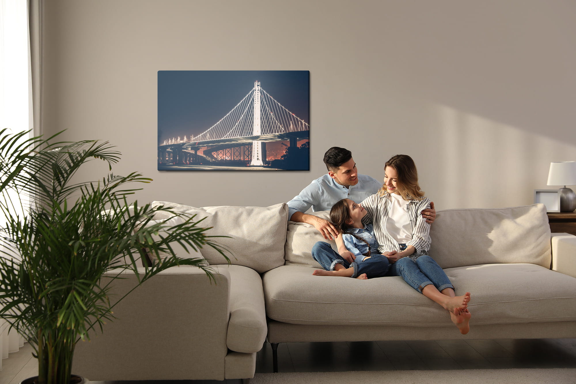 Fotograficzna jakość wydruku, wysokiej jakości płótno naciągnięte na prawdziwą drewnianą ramę. Bezpiecznie zapakowane, gotowe do powieszenia na ścianie. Drukowane w ekologicznej, bezwonnej i w pełni bezpiecznej technologii HP Latex.