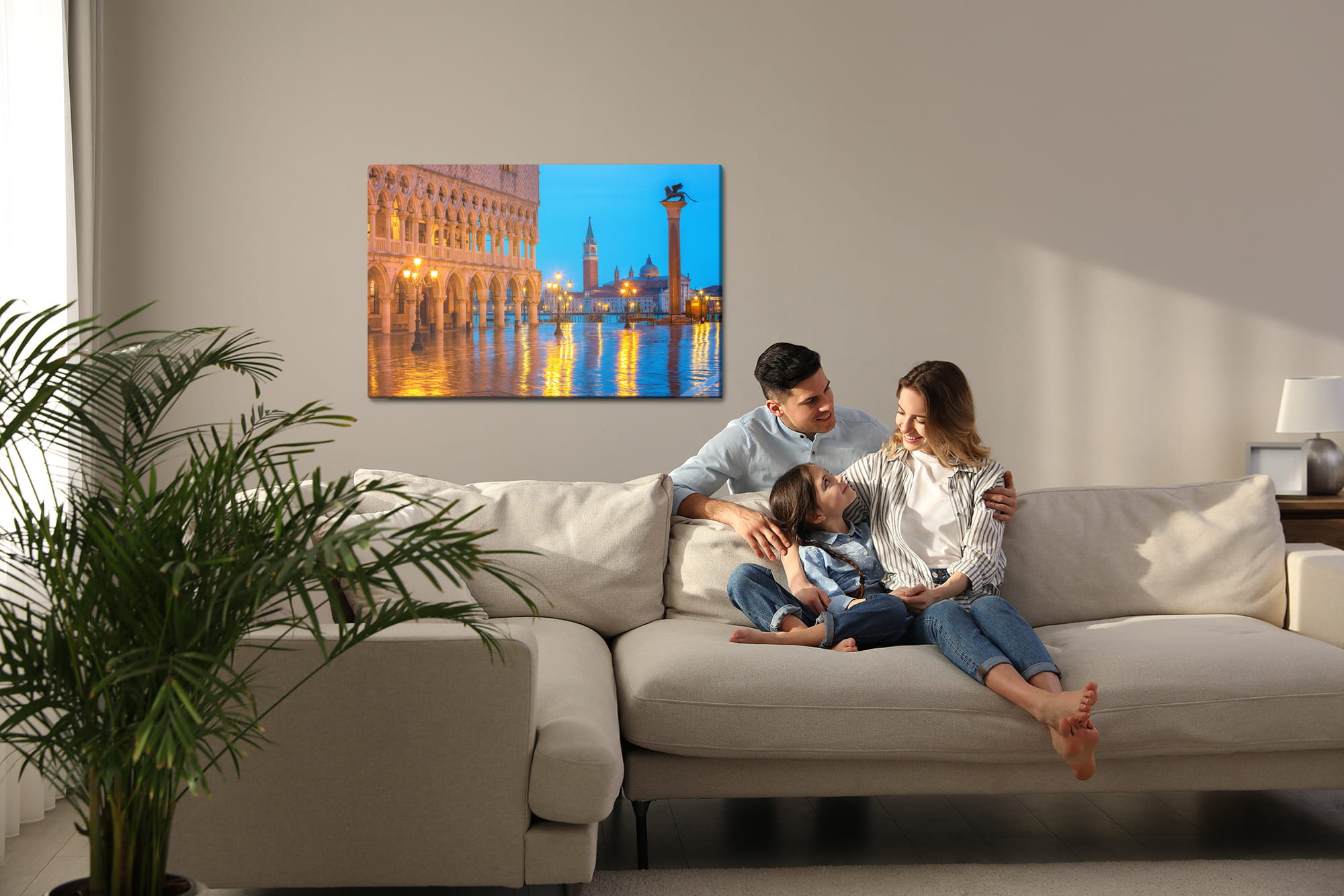 Fotograficzna jakość wydruku, wysokiej jakości płótno naciągnięte na prawdziwą drewnianą ramę. Bezpiecznie zapakowane, gotowe do powieszenia na ścianie. Drukowane w ekologicznej, bezwonnej i w pełni bezpiecznej technologii HP Latex.
