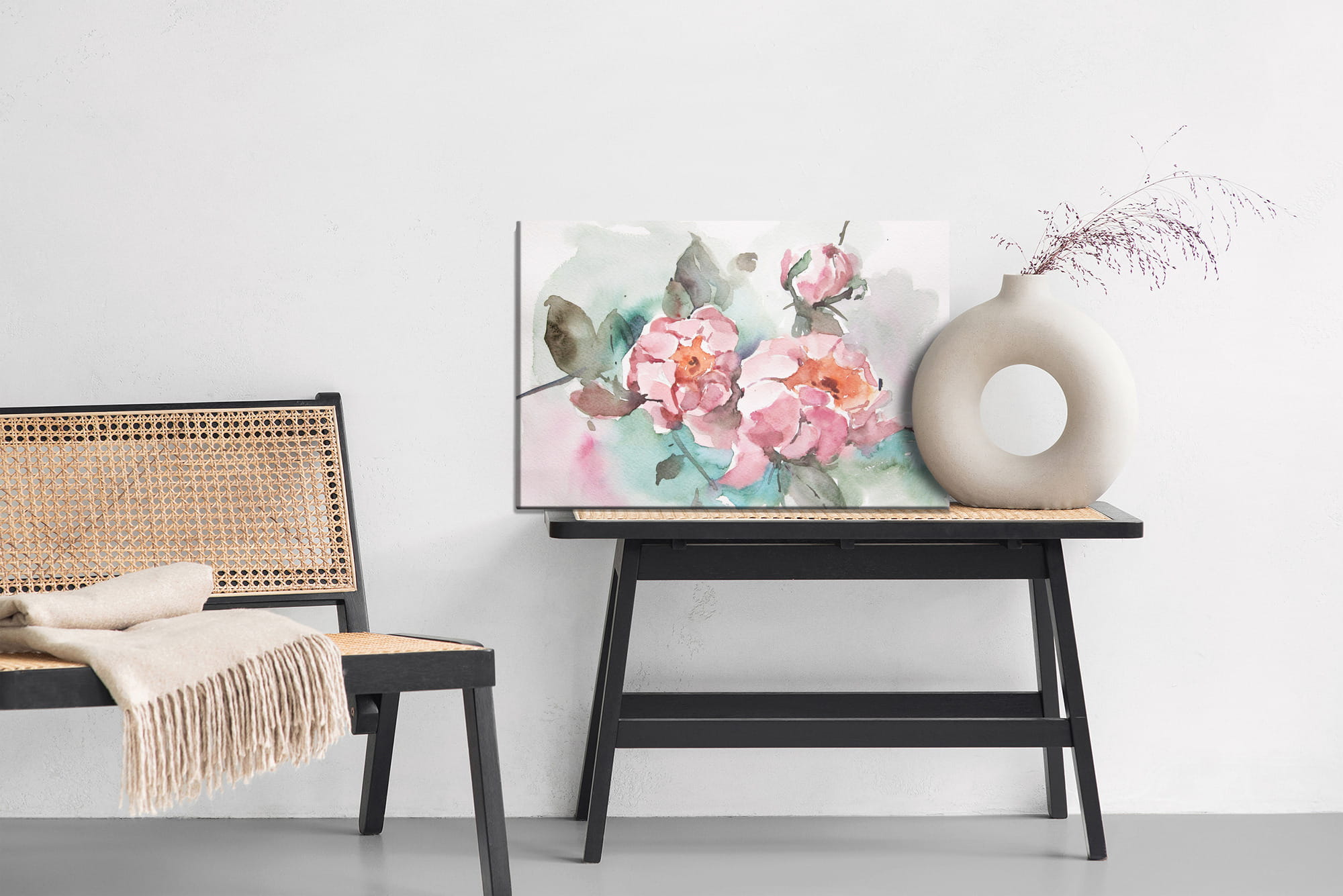 Obraz Na Płótnie Pastelowe Róże I Liście Malowane Akwarelą