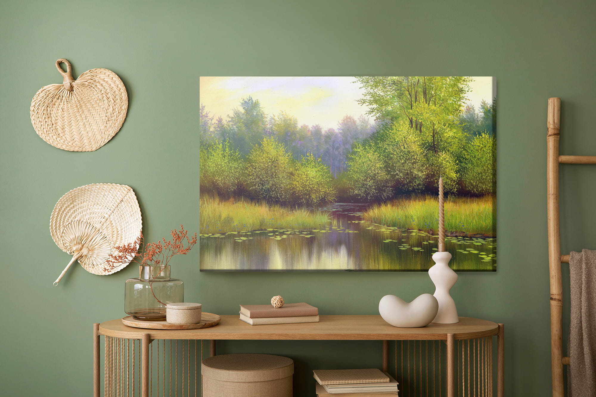 Obraz Na Płótnie Wiosenny Pejzaż Z Jeziorem
