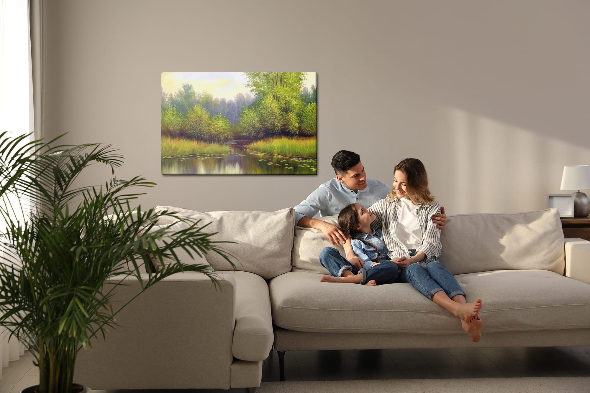 Fotograficzna jakość wydruku, wysokiej jakości płótno naciągnięte na prawdziwą drewnianą ramę. Bezpiecznie zapakowane, gotowe do powieszenia na ścianie. Drukowane w ekologicznej, bezwonnej i w pełni bezpiecznej technologii HP Latex.