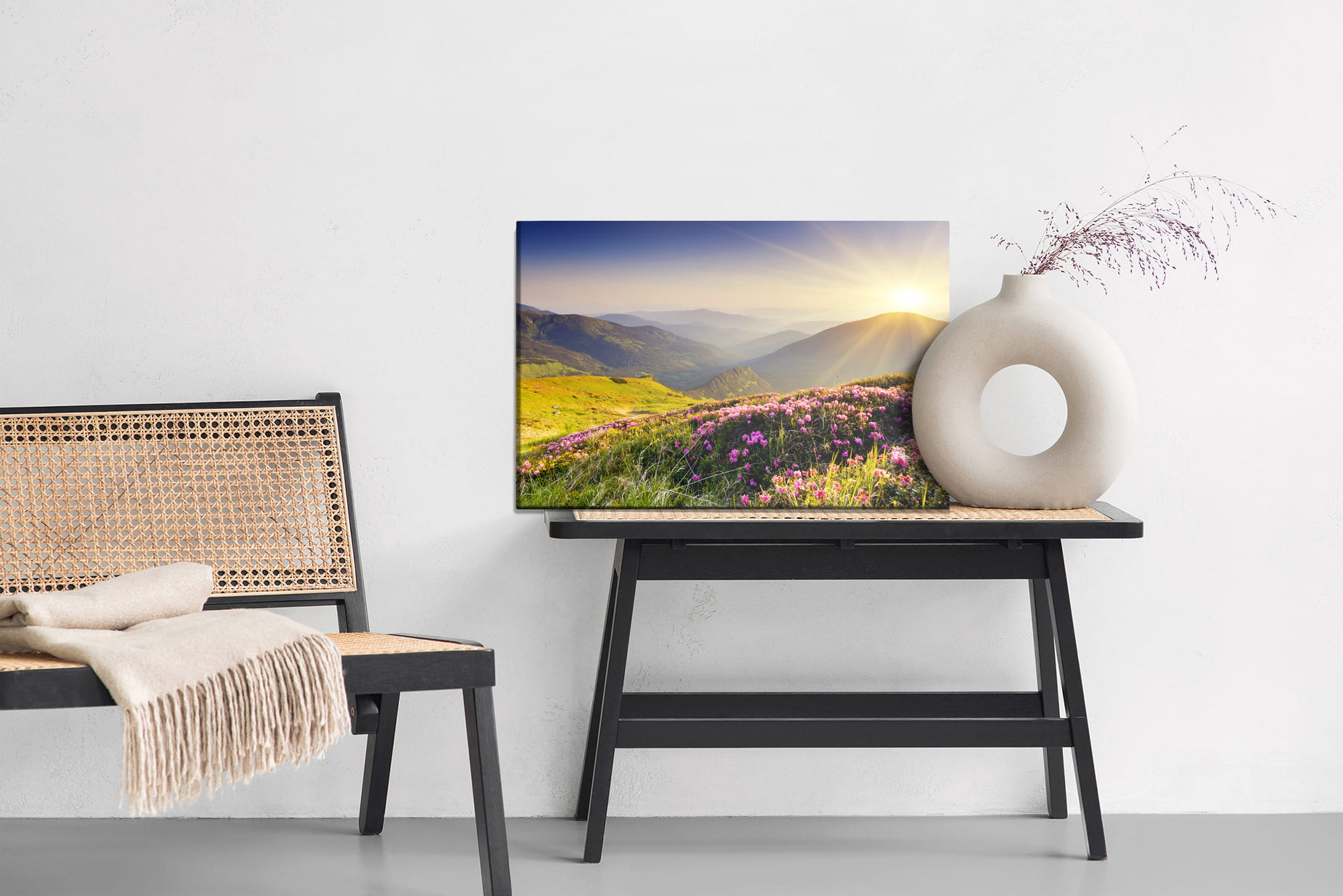 Canvas naturalny to płótno bawełniane o wysokiej gramaturze wynoszącej 260 g/m2 specjalnie przygotowane do zadruku. Powierzchnia materiału jest biała, ma strukturę tekstylną. Połączenie struktury materiału z fotograficzną jakością wydruku lateksowego tworzy niepowtarzalne dekoracje do każdego wnętrza. Po zadruku i wycięciu, płótno naciągane jest na krosno z prawdziwego drewna sosnowego. Tak przygotowany produkt jest gotowy do powieszenia na ścianie. W pełni naturalny i ekologiczny.