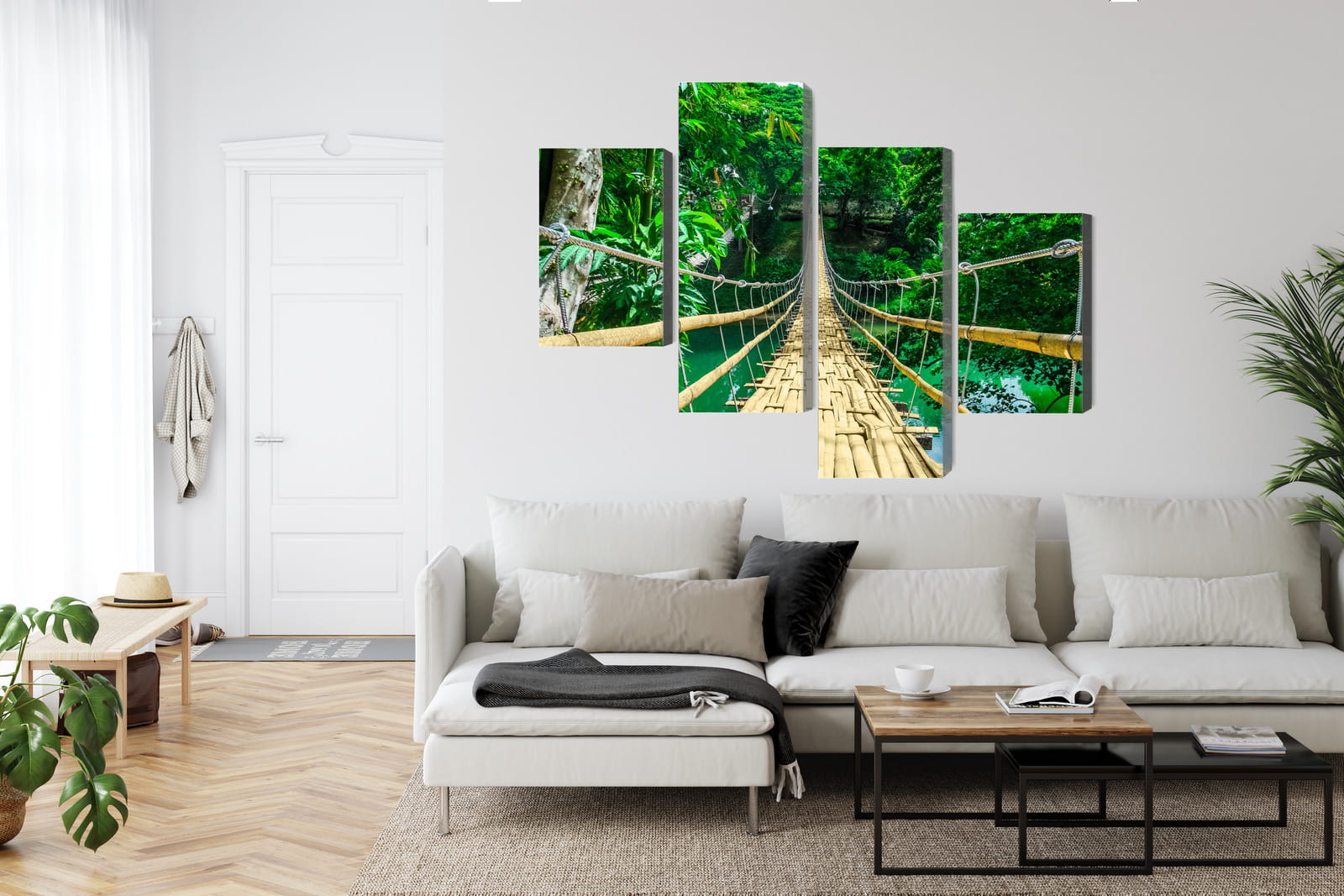 Obraz Wieloczęściowy Bambusowy Most W Lesie Deszczowym