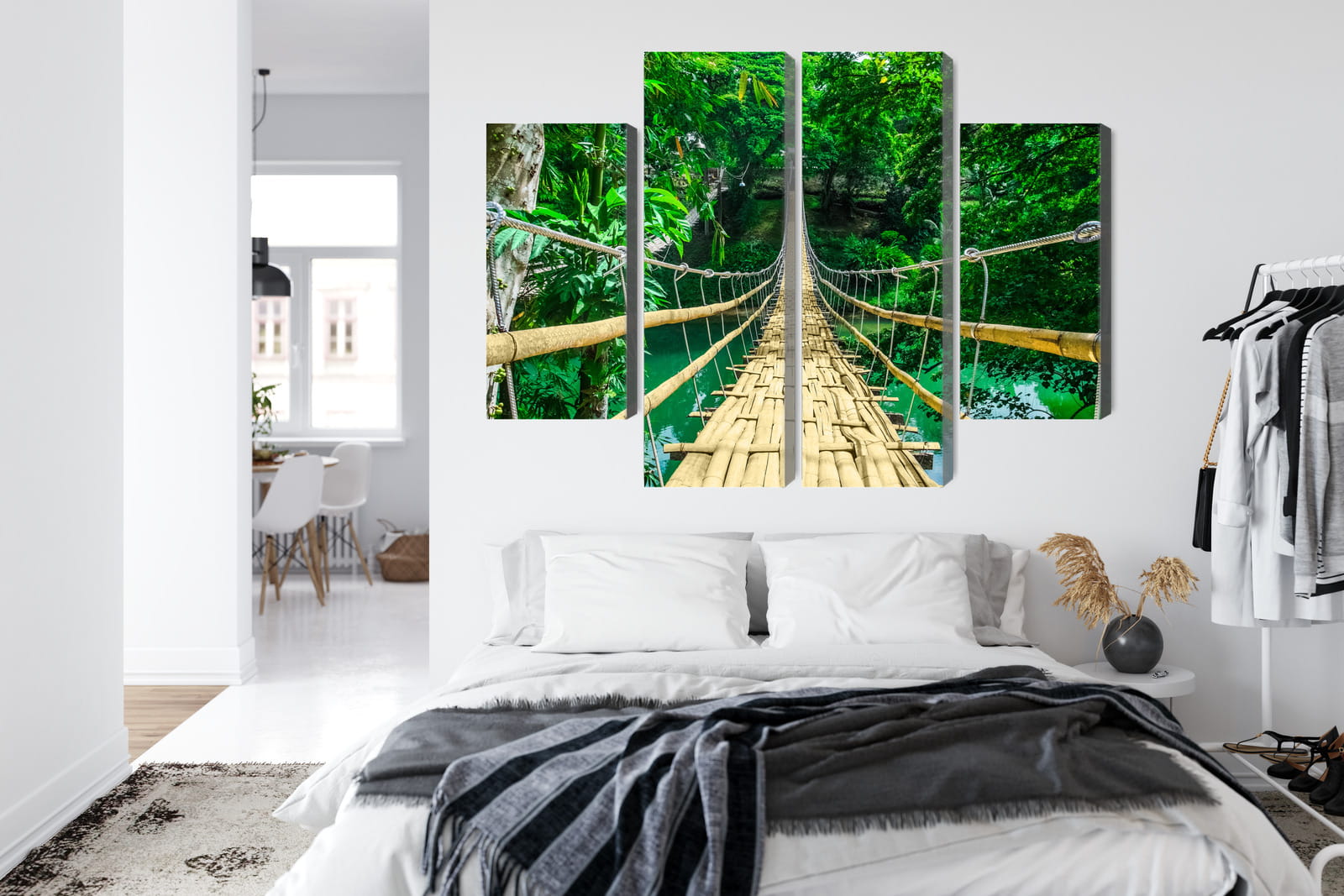 Obraz Wieloczęściowy Bambusowy Most W Lesie Deszczowym