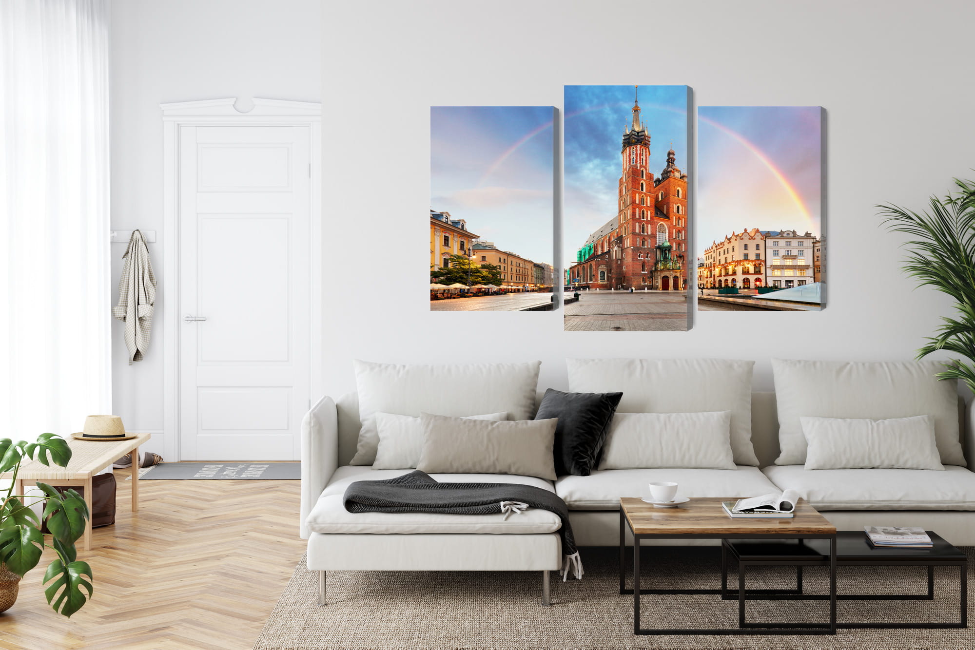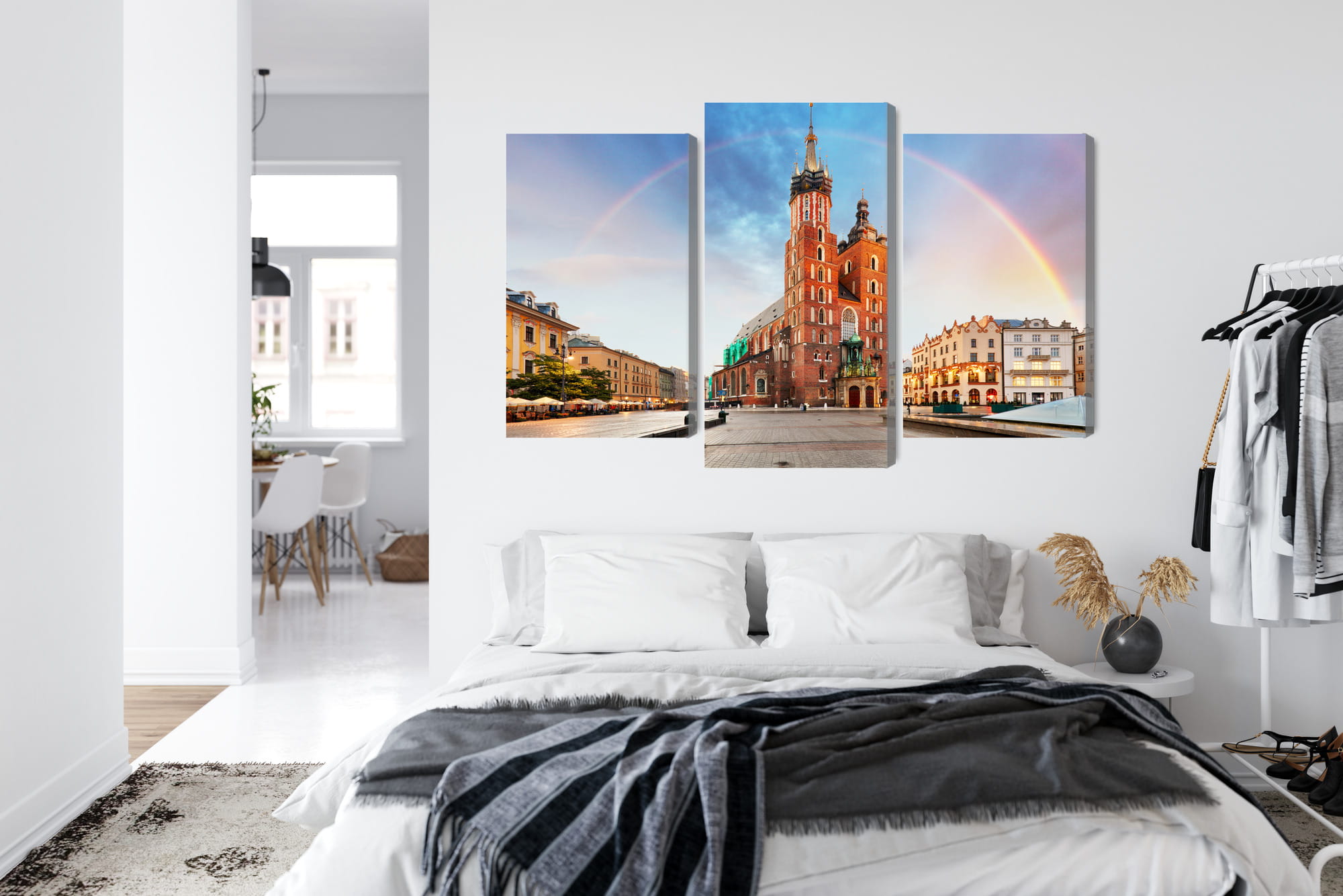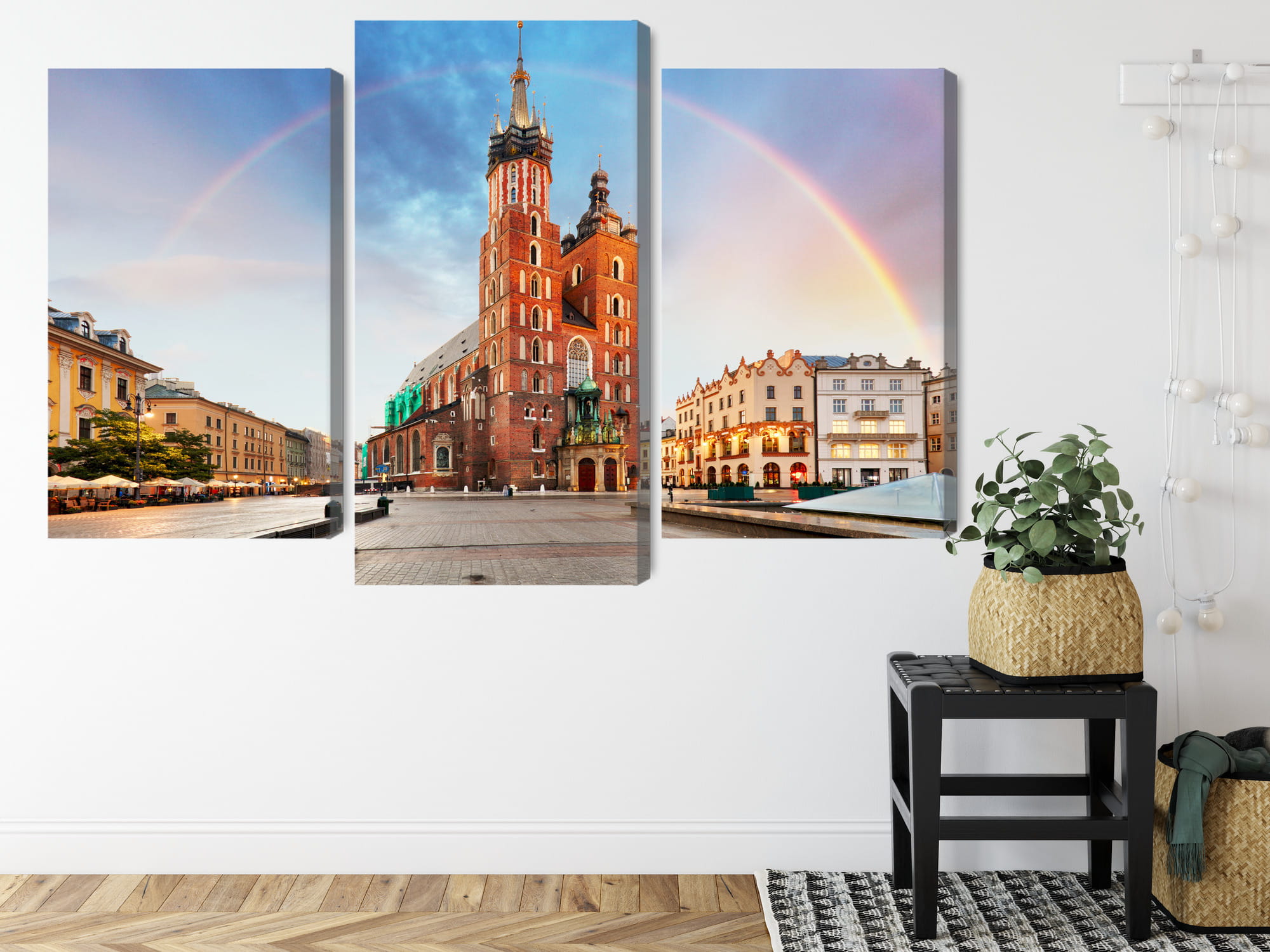 Obraz Wieloczęściowy Bazylika Mariacka W Krakowie Na Tęczowym Tle