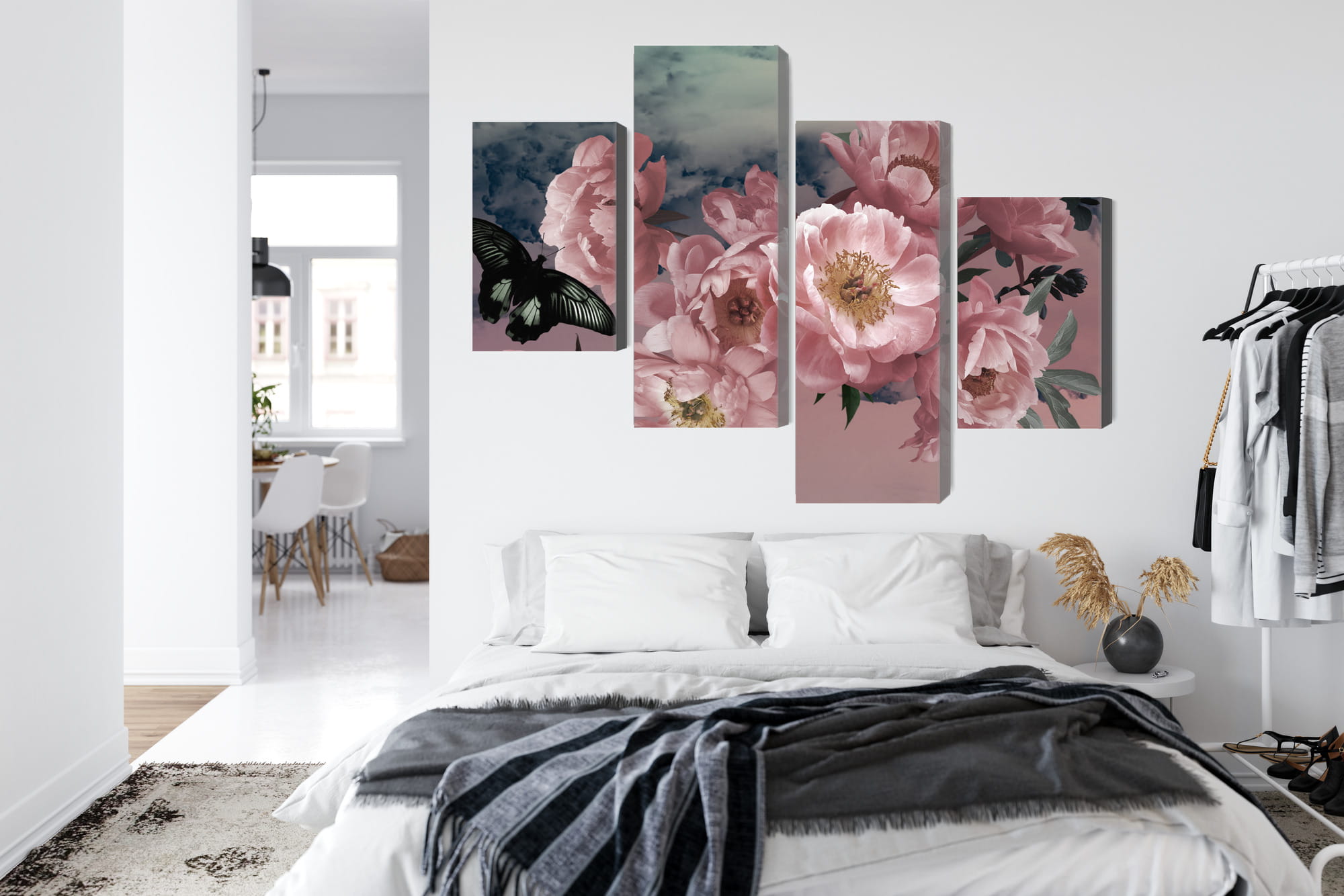 Obraz Wieloczęściowy Bukiet Kwiatów I Motyl