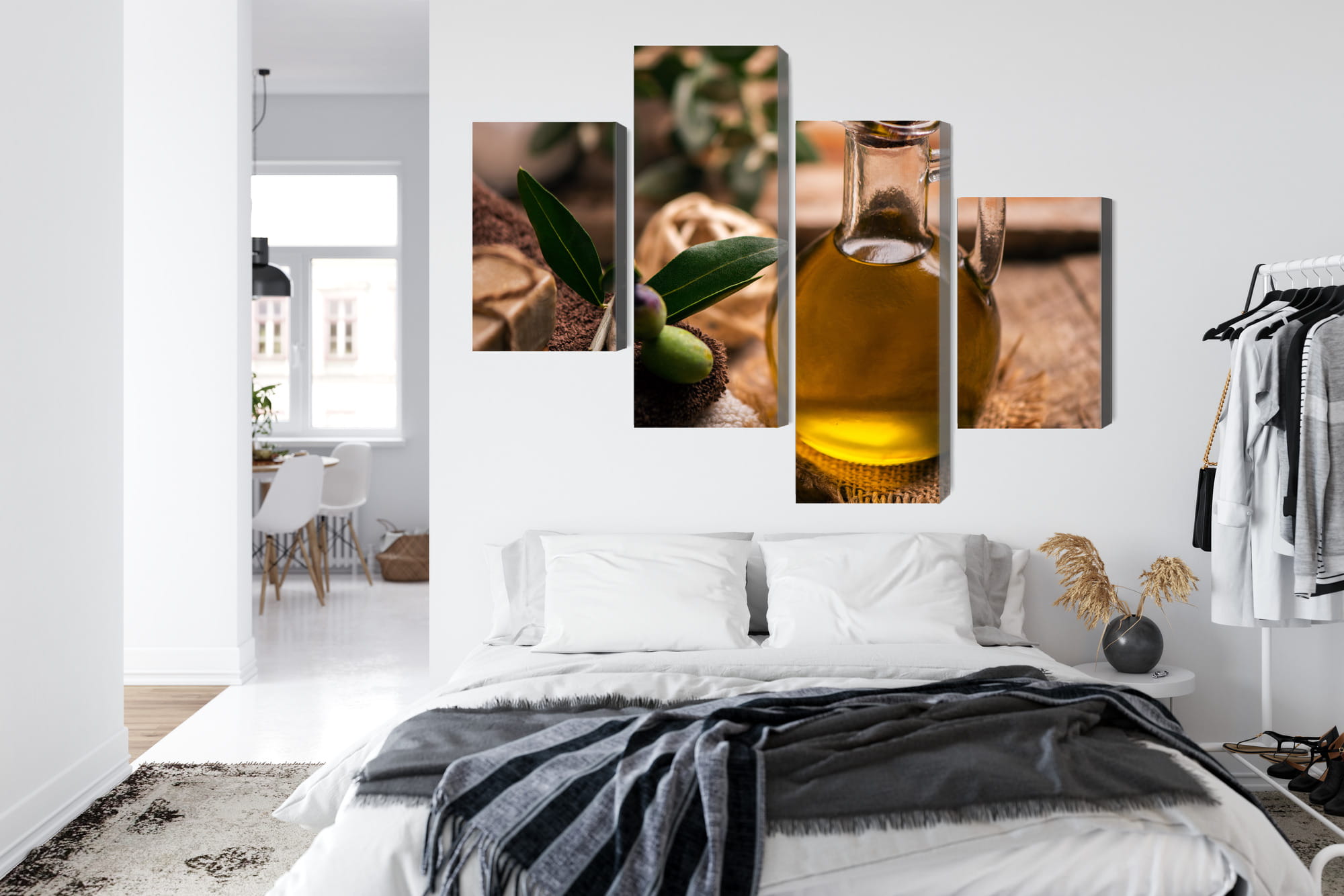 Obraz Wieloczęściowy Butelka Oliwy Z Oliwek