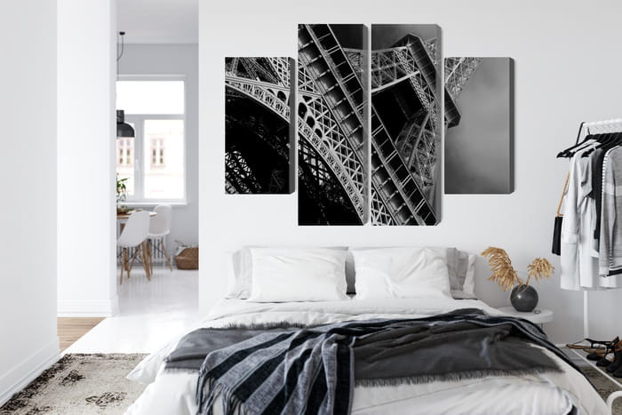 Obraz Wieloczęściowy Czarno-Biały Widok Na Wieżę Eiffla Od Dołu
