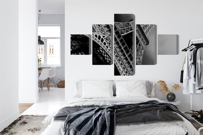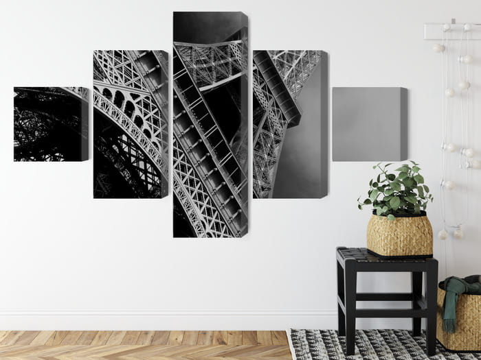 Obraz Wieloczęściowy Czarno-Biały Widok Na Wieżę Eiffla Od Dołu