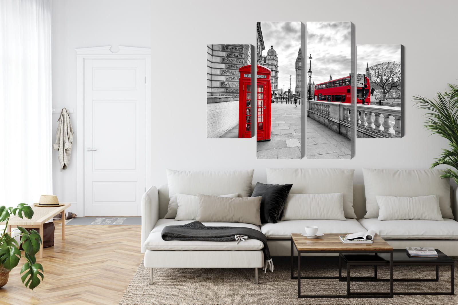 Obraz Wieloczęściowy Czerwona Budka Telefoniczna W Londynie I Big Ben