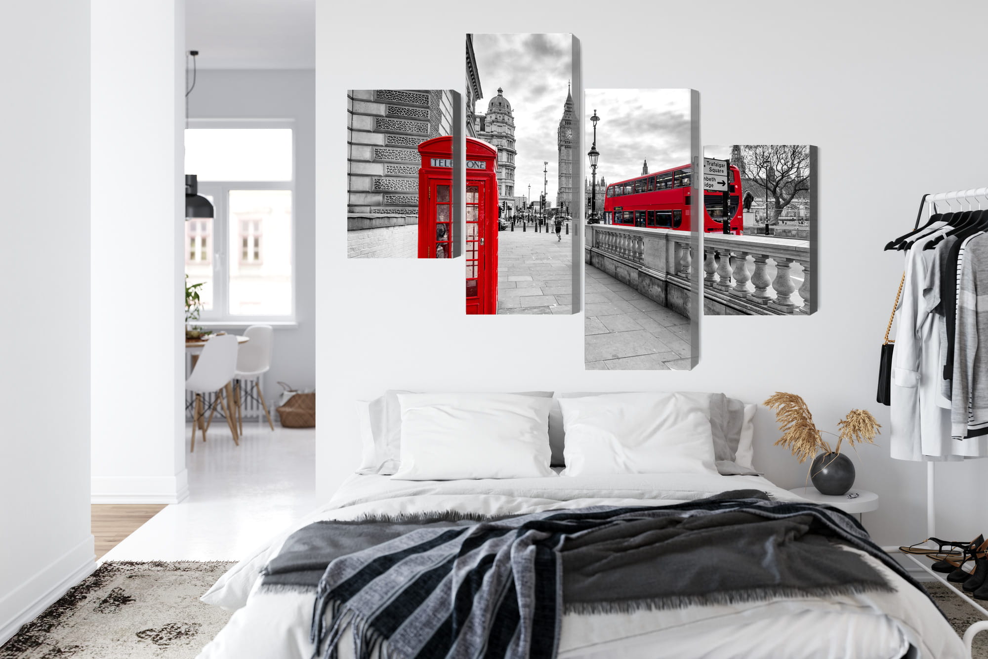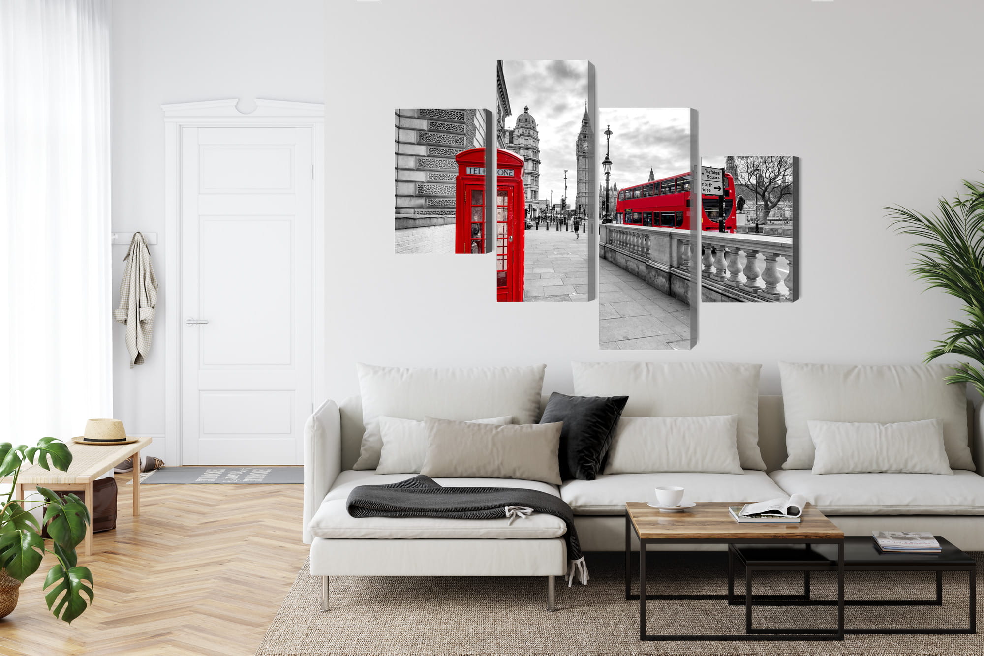 Obraz Wieloczęściowy Czerwona Budka Telefoniczna W Londynie I Big Ben