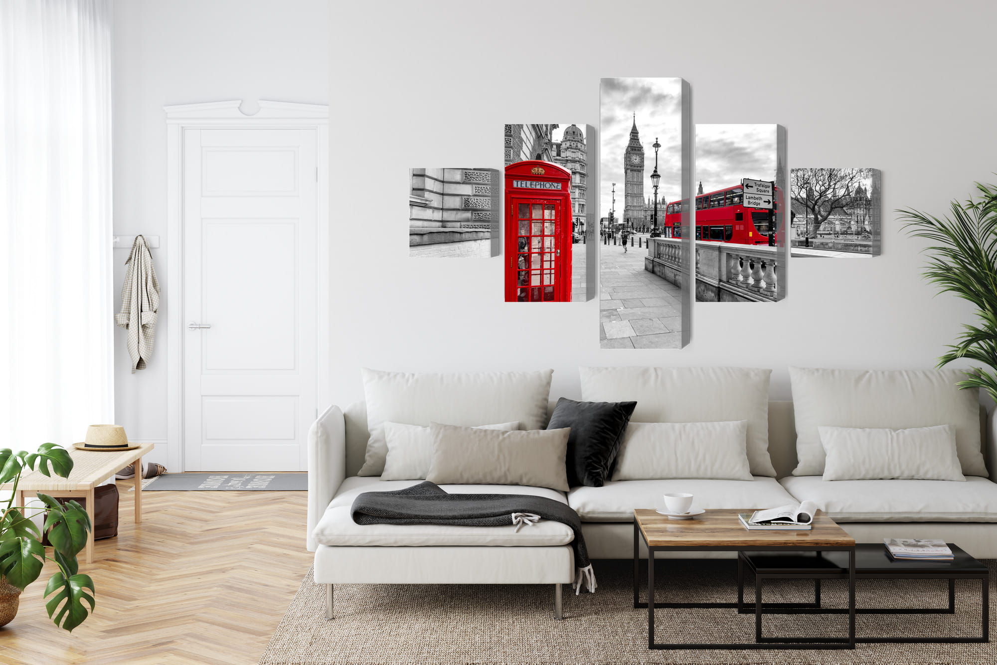 Obraz Wieloczęściowy Czerwona Budka Telefoniczna W Londynie I Big Ben