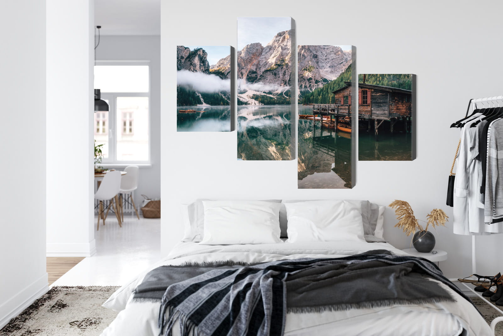 Obraz Wieloczęściowy Domek Nad Włoskim Jeziorem Braies 3D