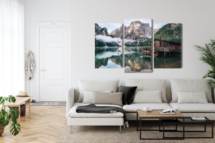 Obraz Wieloczęściowy Domek Nad Włoskim Jeziorem Braies 3D