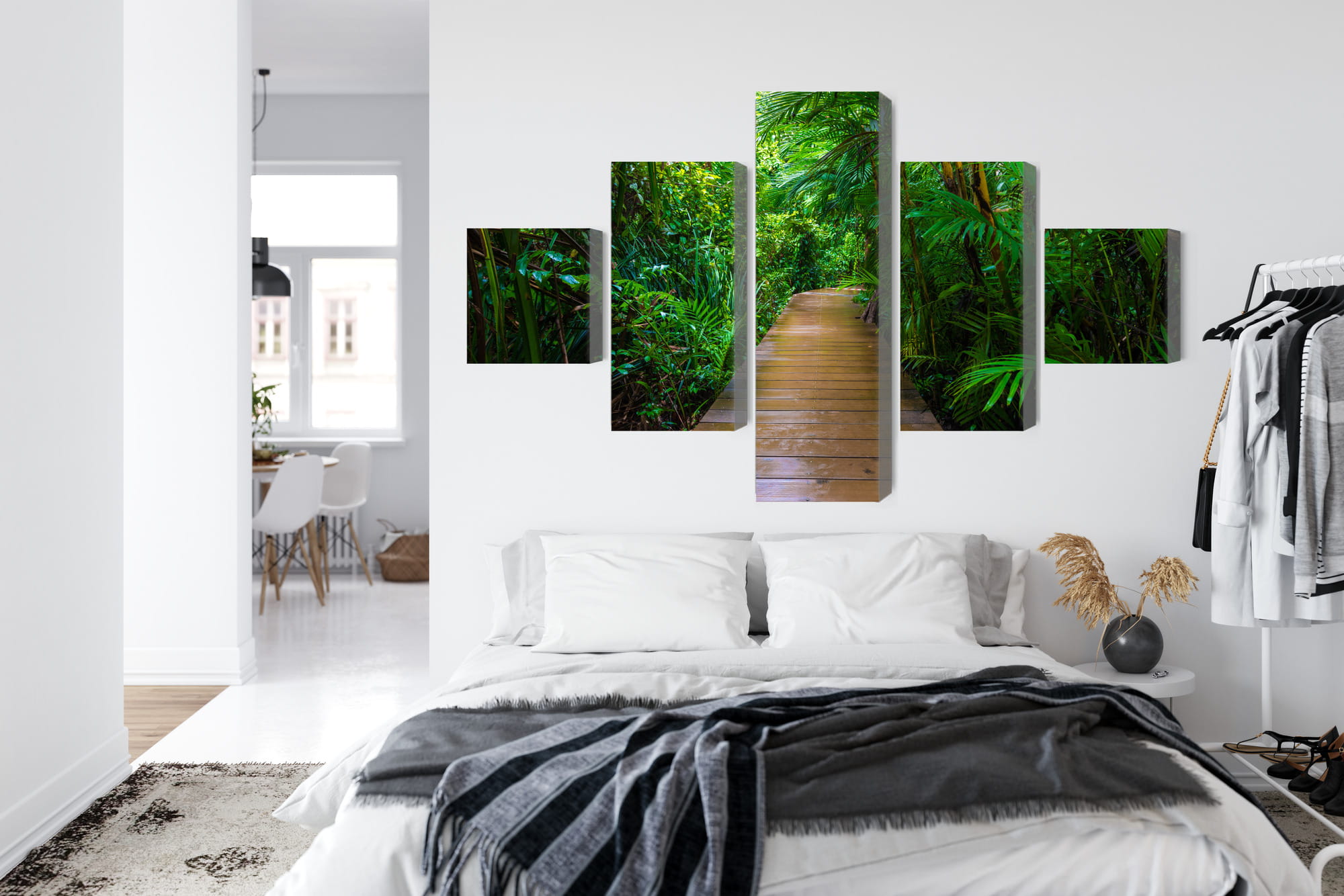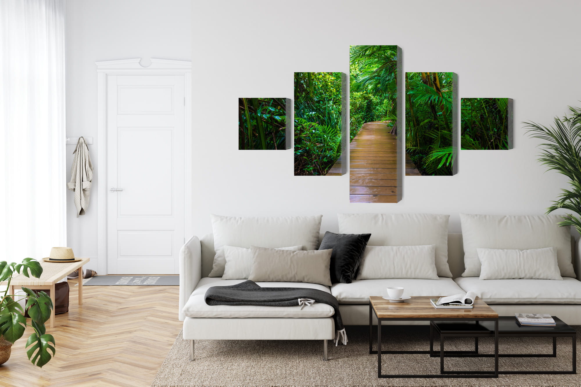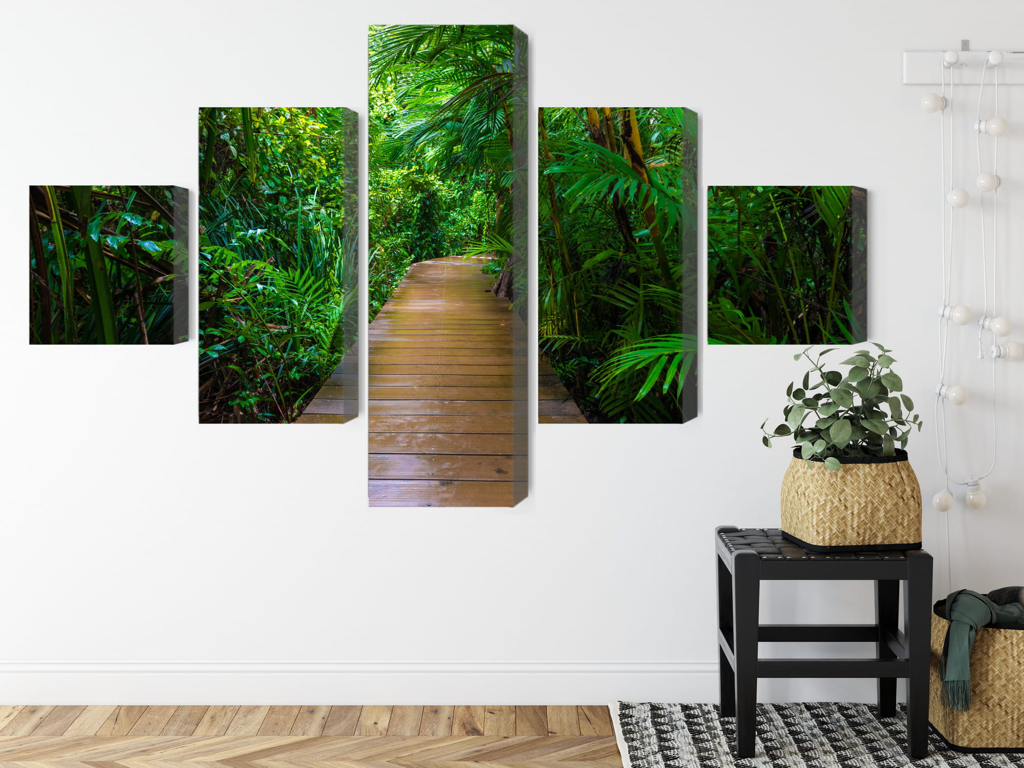 Obraz Wieloczęściowy Drewniany Most W Tropikalnym Lesie 3D