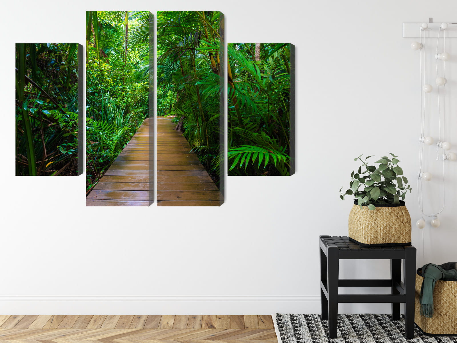 Obraz Wieloczęściowy Drewniany Most W Tropikalnym Lesie 3D