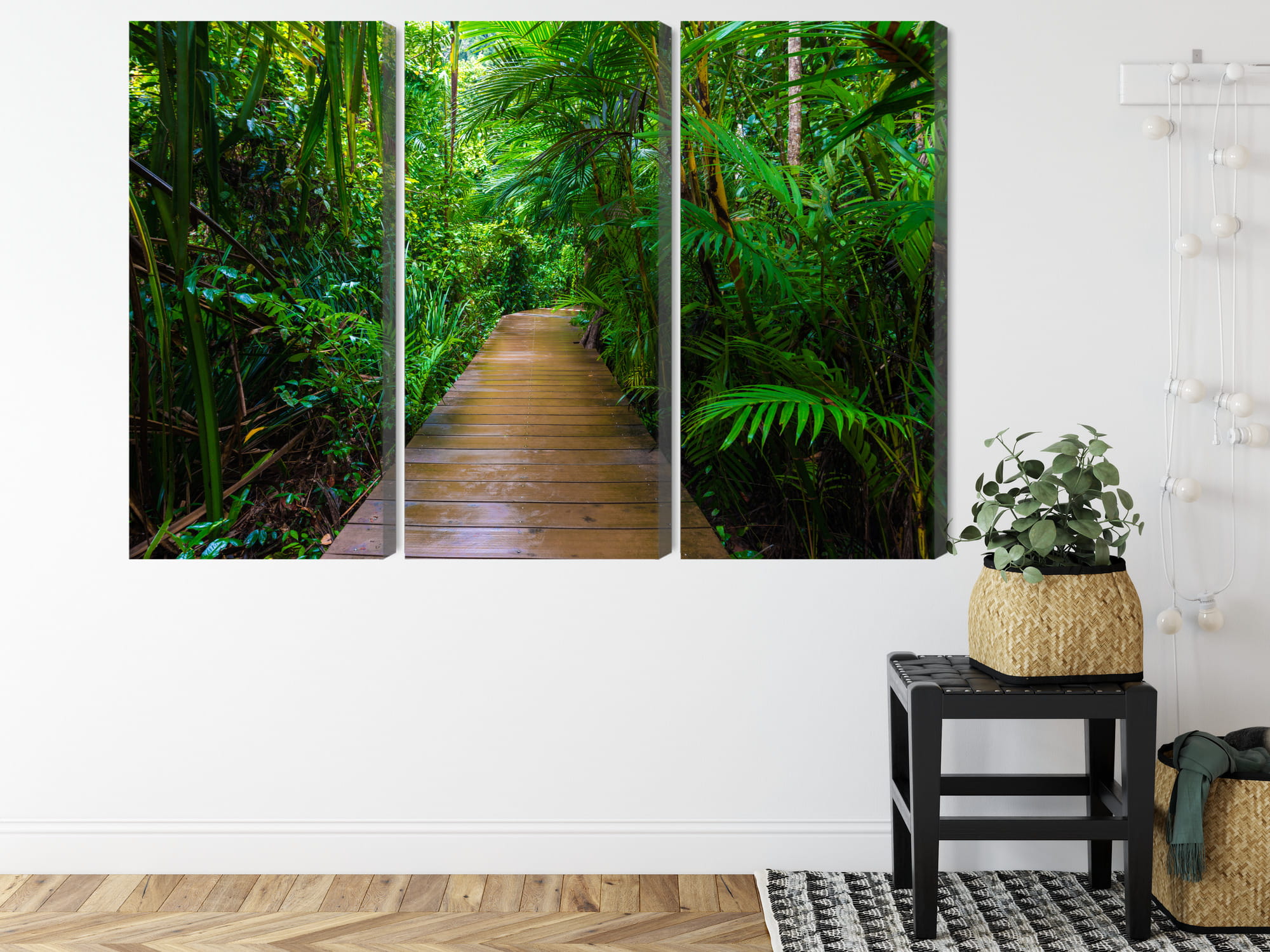 Obraz Wieloczęściowy Drewniany Most W Tropikalnym Lesie 3D