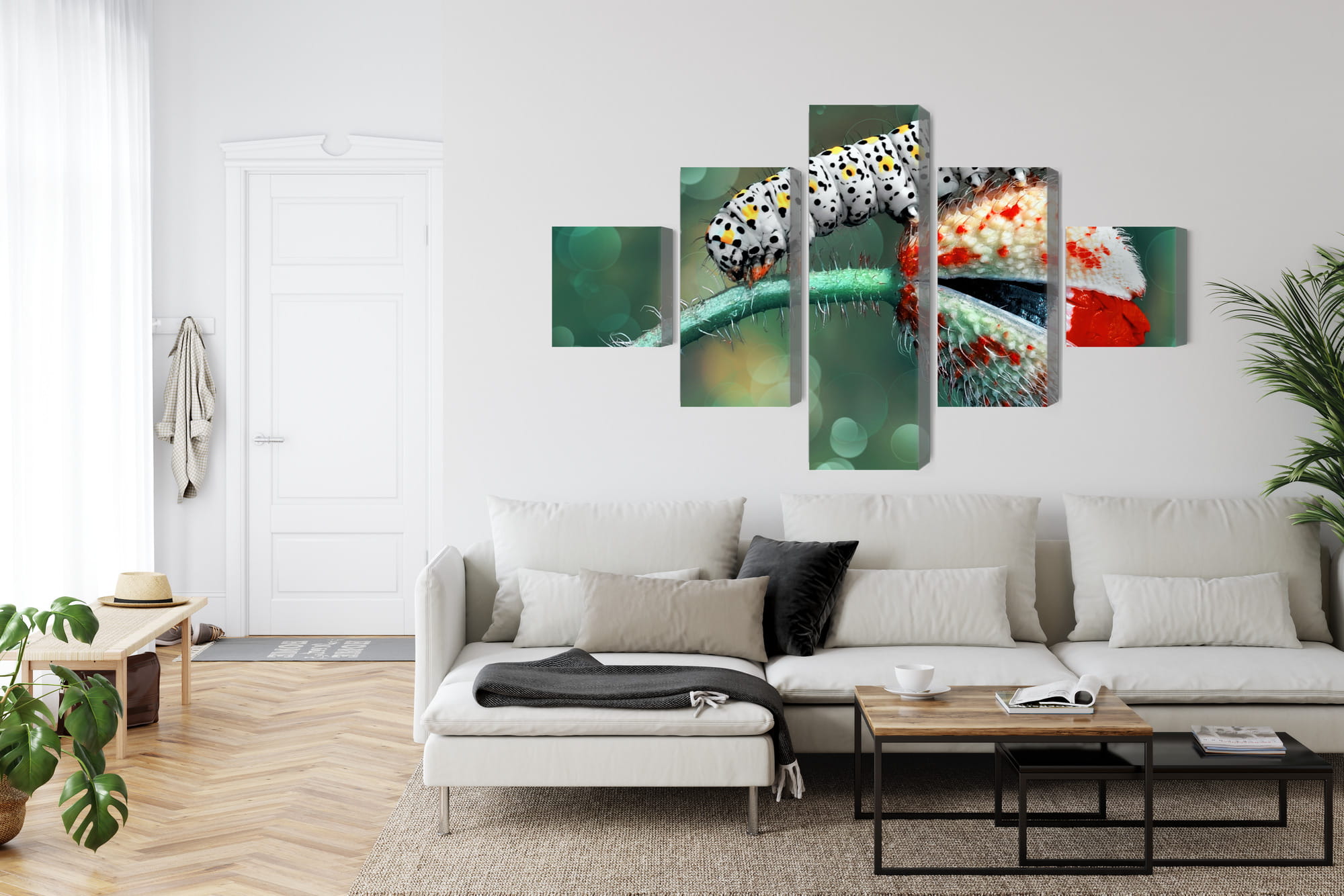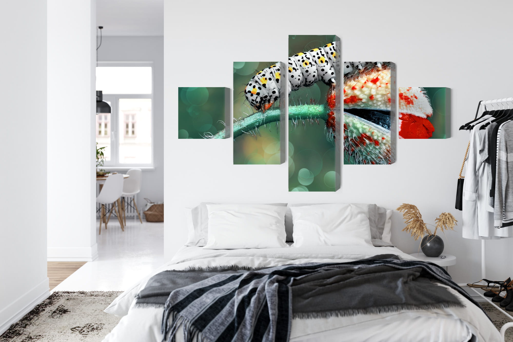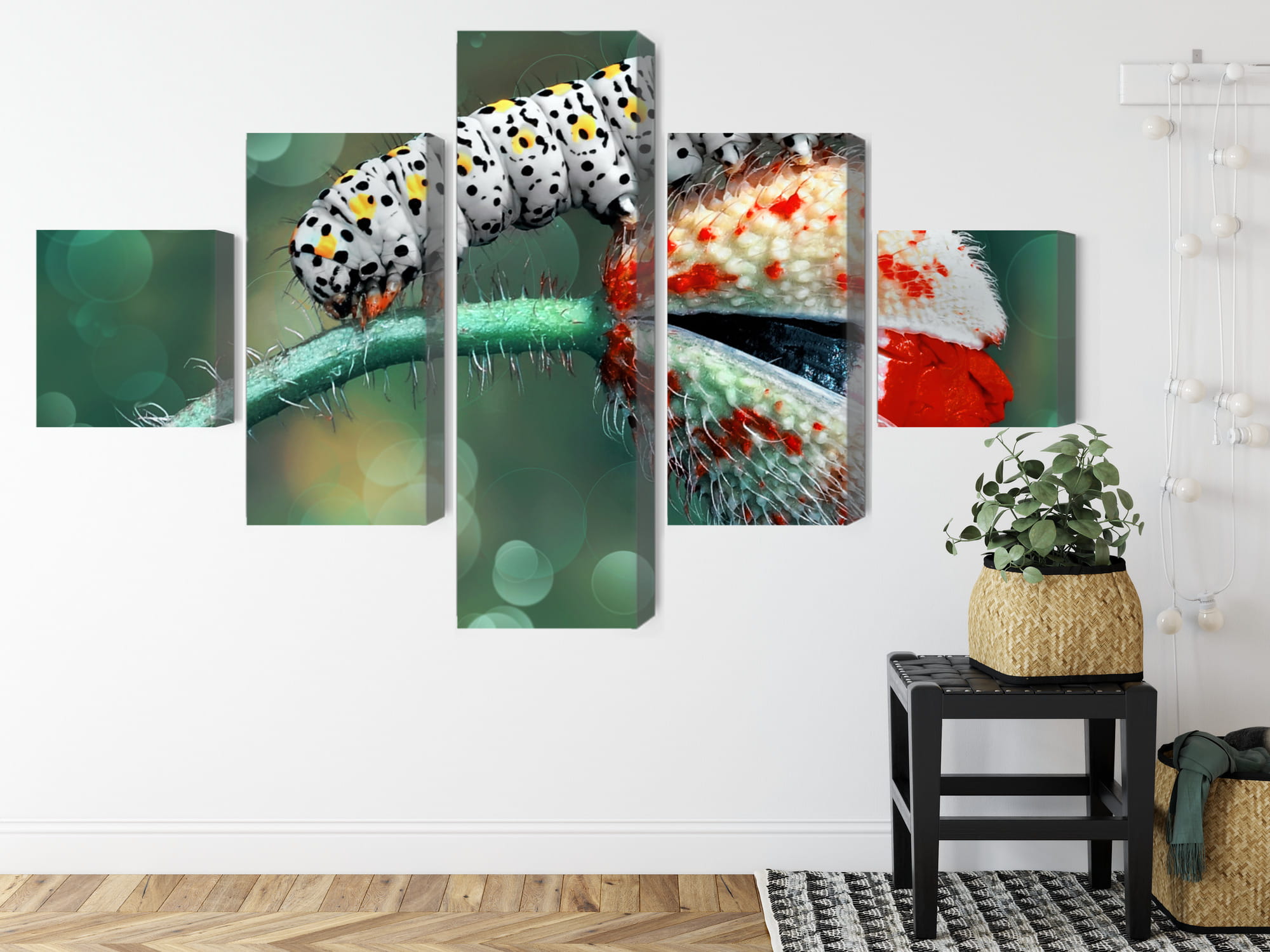 Obraz Wieloczęściowy Gąsienica I Biedronka Na Roślinie Makro