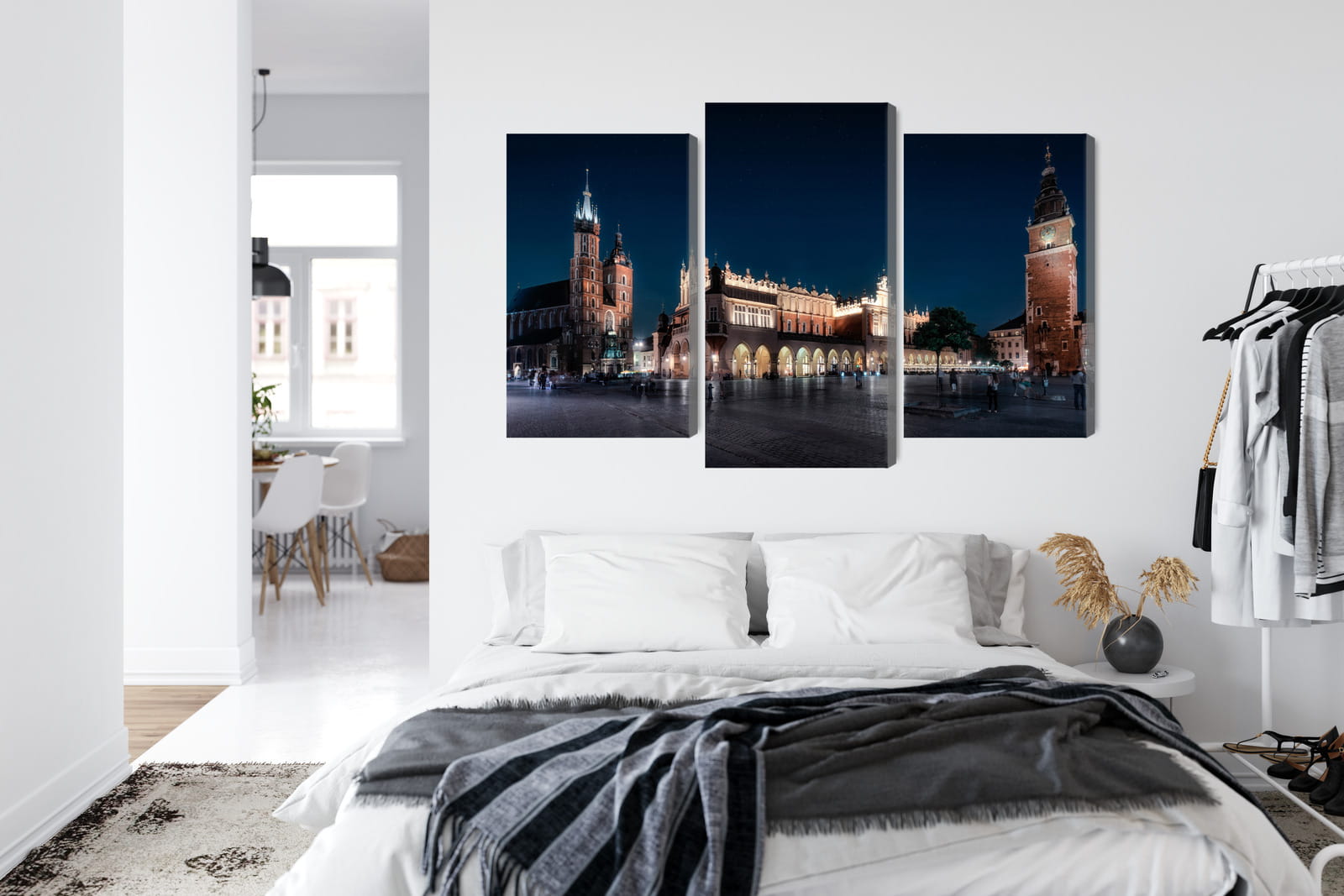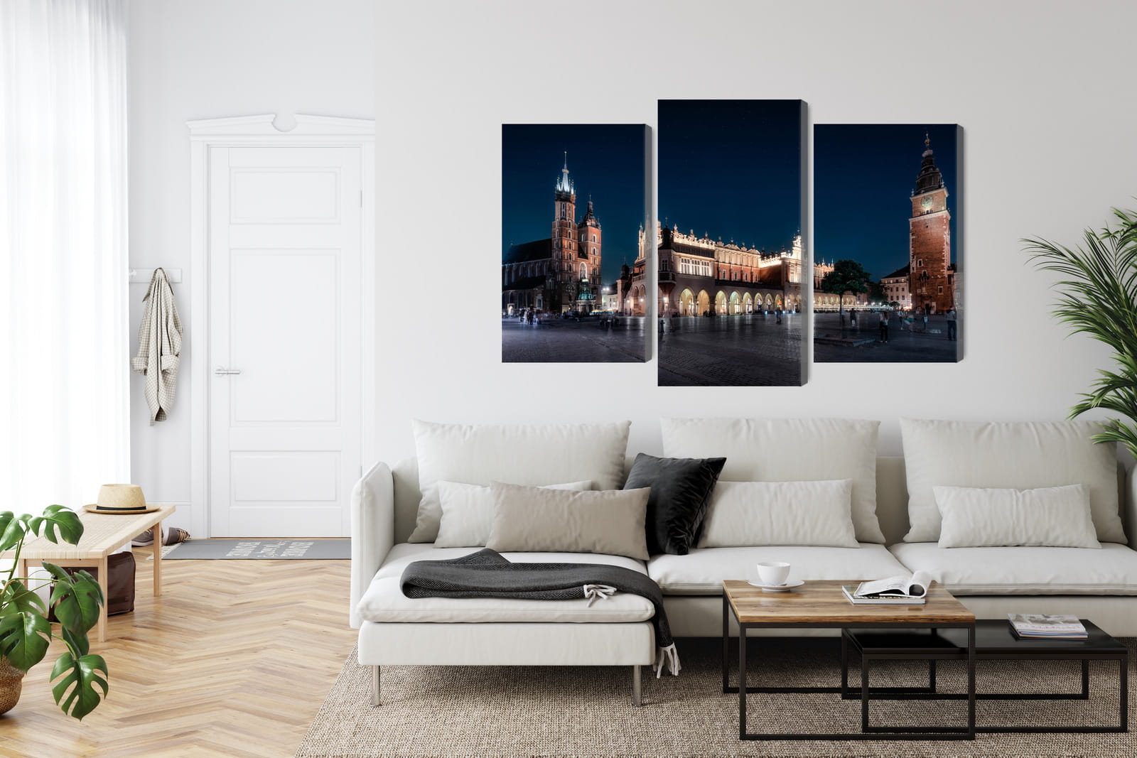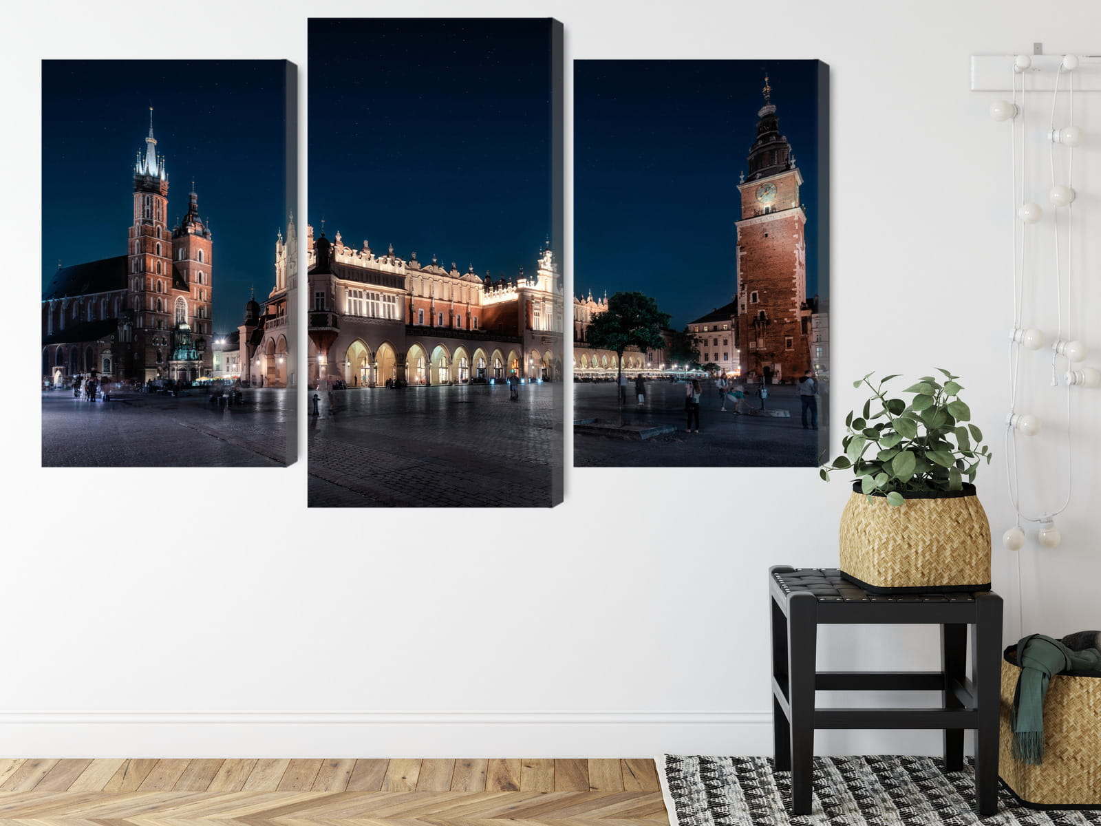 Obraz Wieloczęściowy Krakowskie Sukiennice I Wieża Mariacka Nocą
