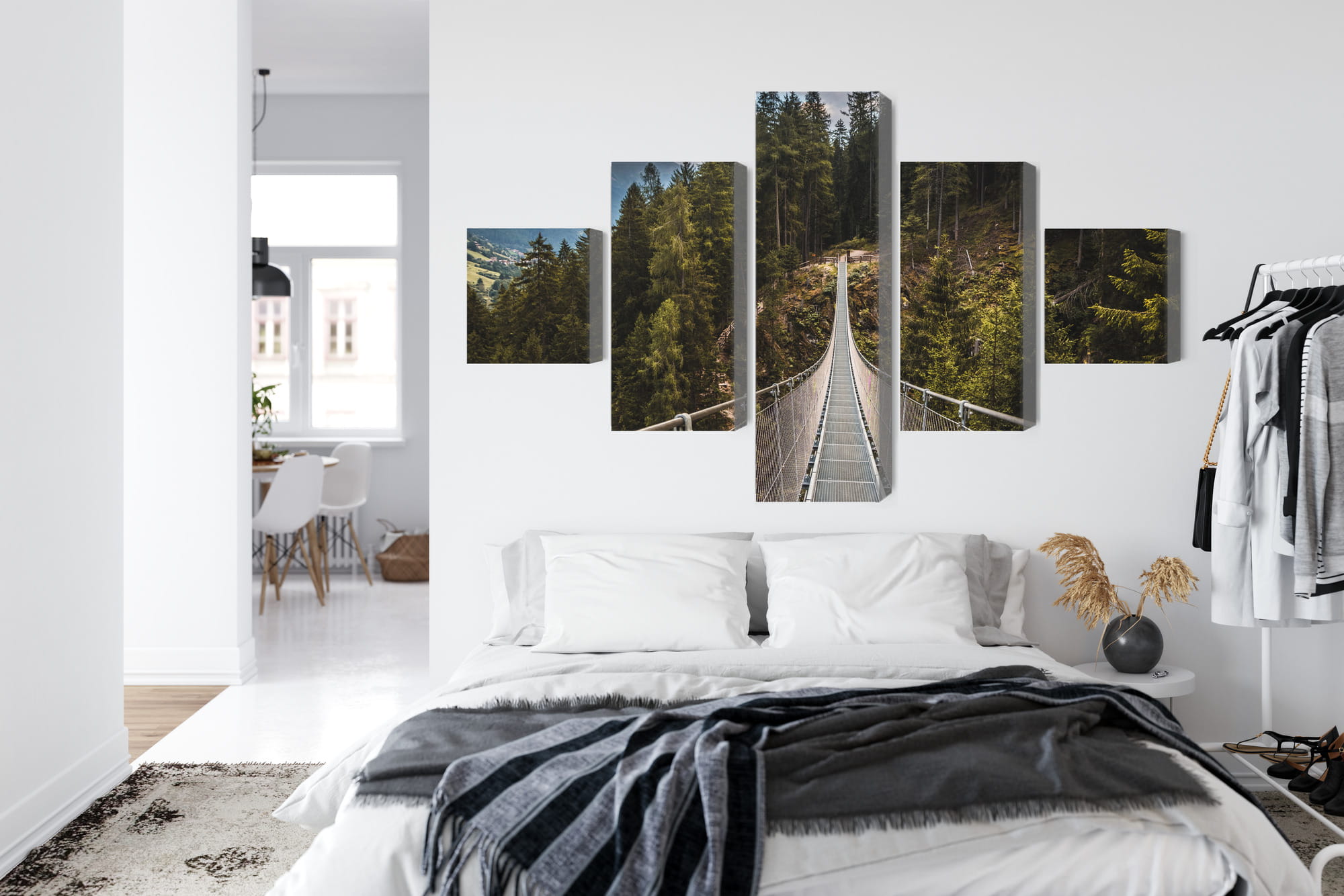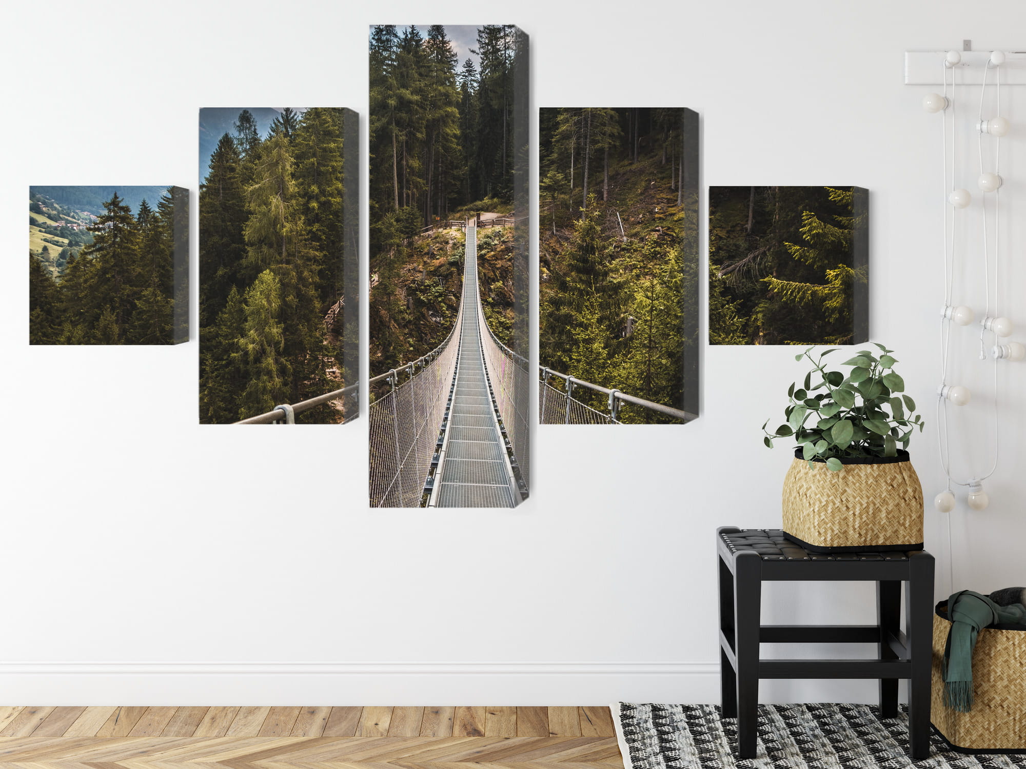 Obraz Wieloczęściowy Most Wiszący W Górskim Lesie 3D