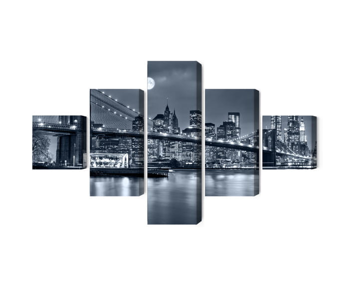 Obraz Wieloczęściowy Nocna Panorama Nowego Jorku Z Księżycem Na Niebie