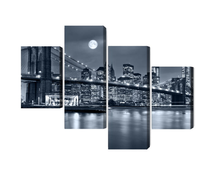 Obraz Wieloczęściowy Nocna Panorama Nowego Jorku Z Księżycem Na Niebie