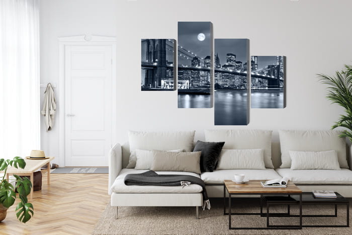 Canvas naturalny to płótno bawełniane o wysokiej gramaturze wynoszącej 260 g/m2 specjalnie przygotowane do zadruku. Powierzchnia materiału jest biała, ma strukturę tekstylną. Połączenie struktury materiału z fotograficzną jakością wydruku lateksowego tworzy niepowtarzalne dekoracje do każdego wnętrza. Po zadruku i wycięciu, płótno naciągane jest na krosno z prawdziwego drewna sosnowego. Tak przygotowany produkt jest gotowy do powieszenia na ścianie. W pełni naturalny i ekologiczny.