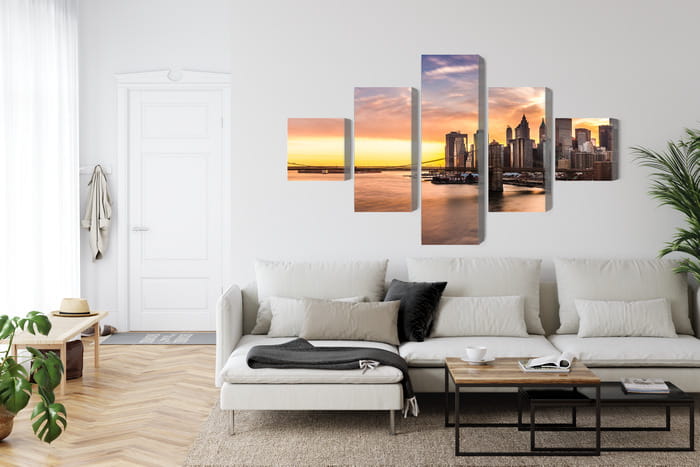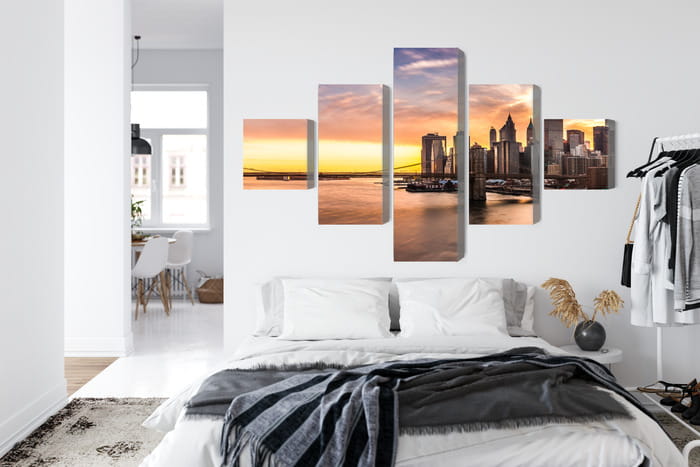 Obraz Wieloczęściowy Panorama Mostu Brooklińskiego O Zachodzie Słońca