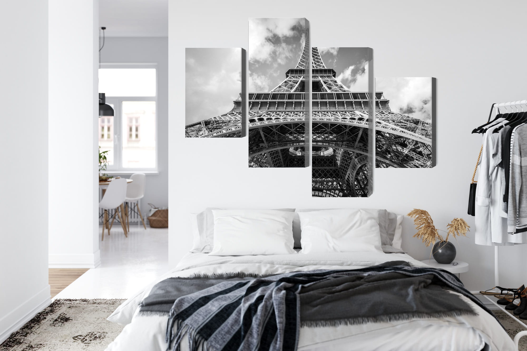 Obraz Wieloczęściowy Paryż Wieża Eiffla Czarno-Biały Widok