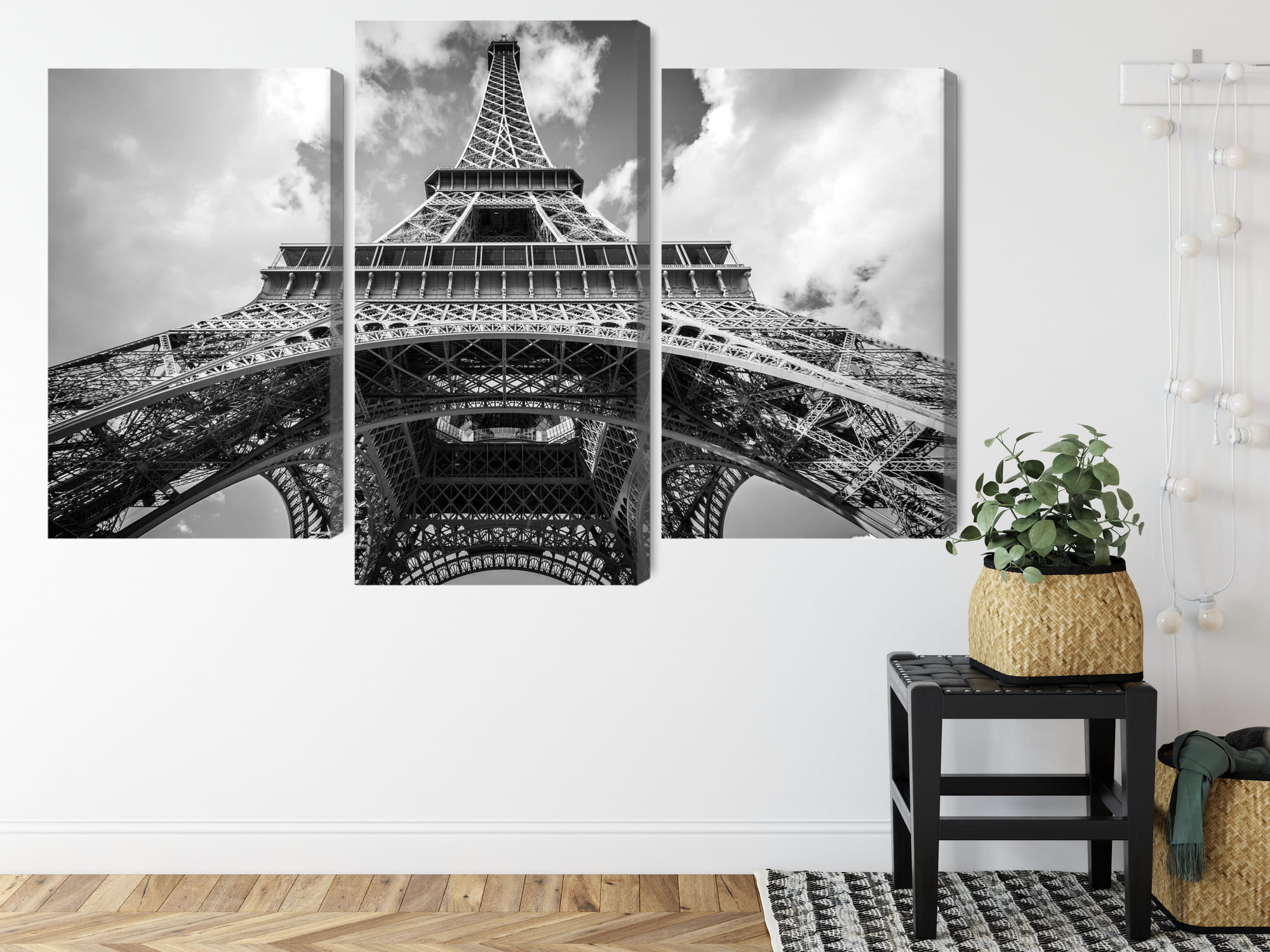 Obraz Wieloczęściowy Paryż Wieża Eiffla Czarno-Biały Widok