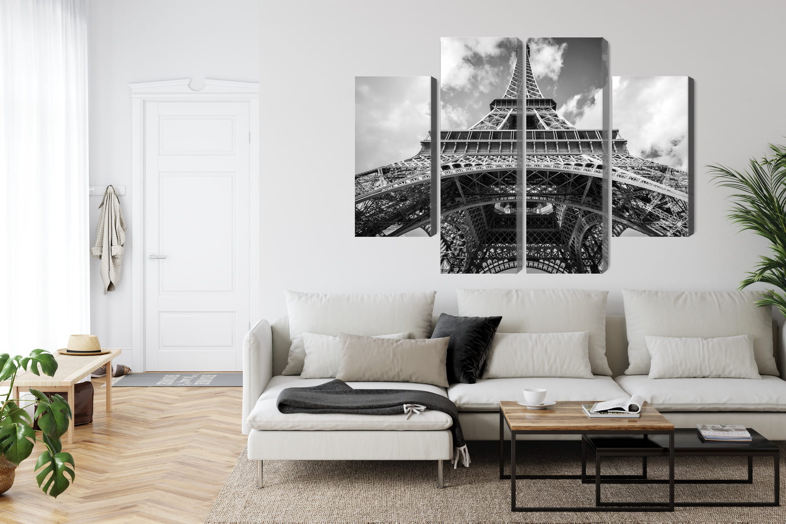 Obraz Wieloczęściowy Paryż Wieża Eiffla Czarno-Biały Widok