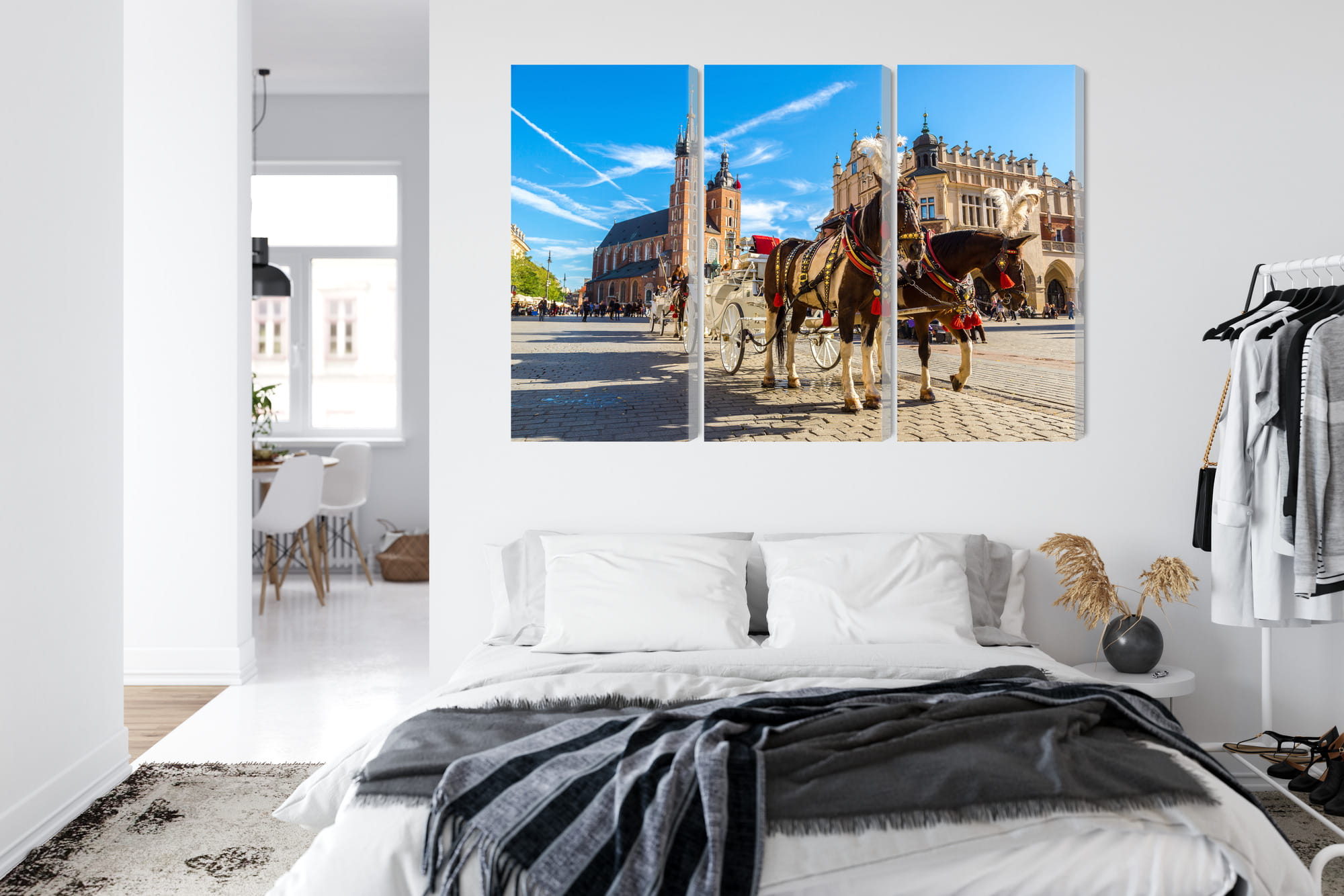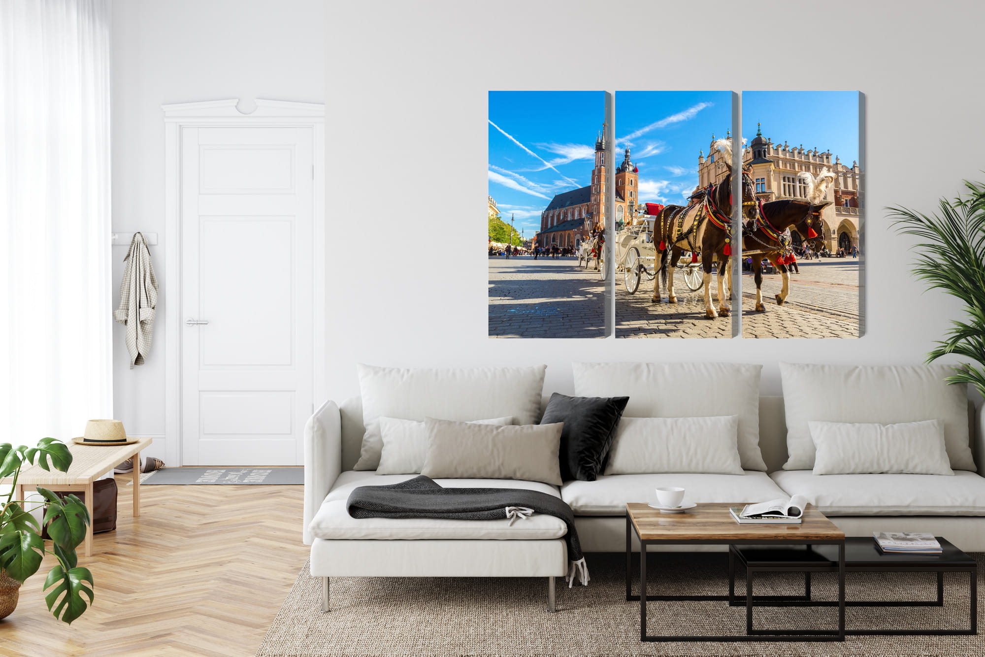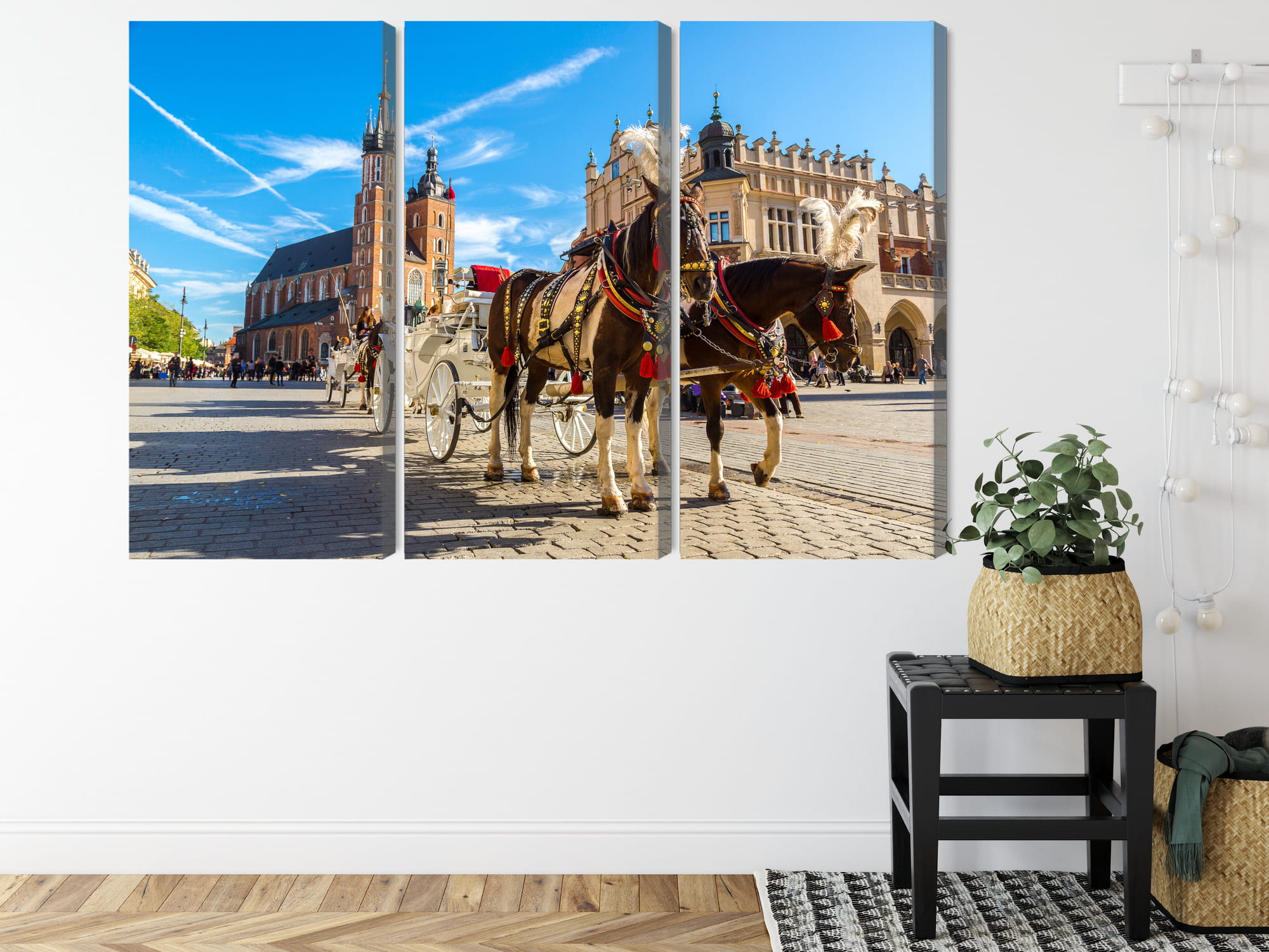 Obraz Wieloczęściowy Powozy Konne Na Krakowskim Rynku