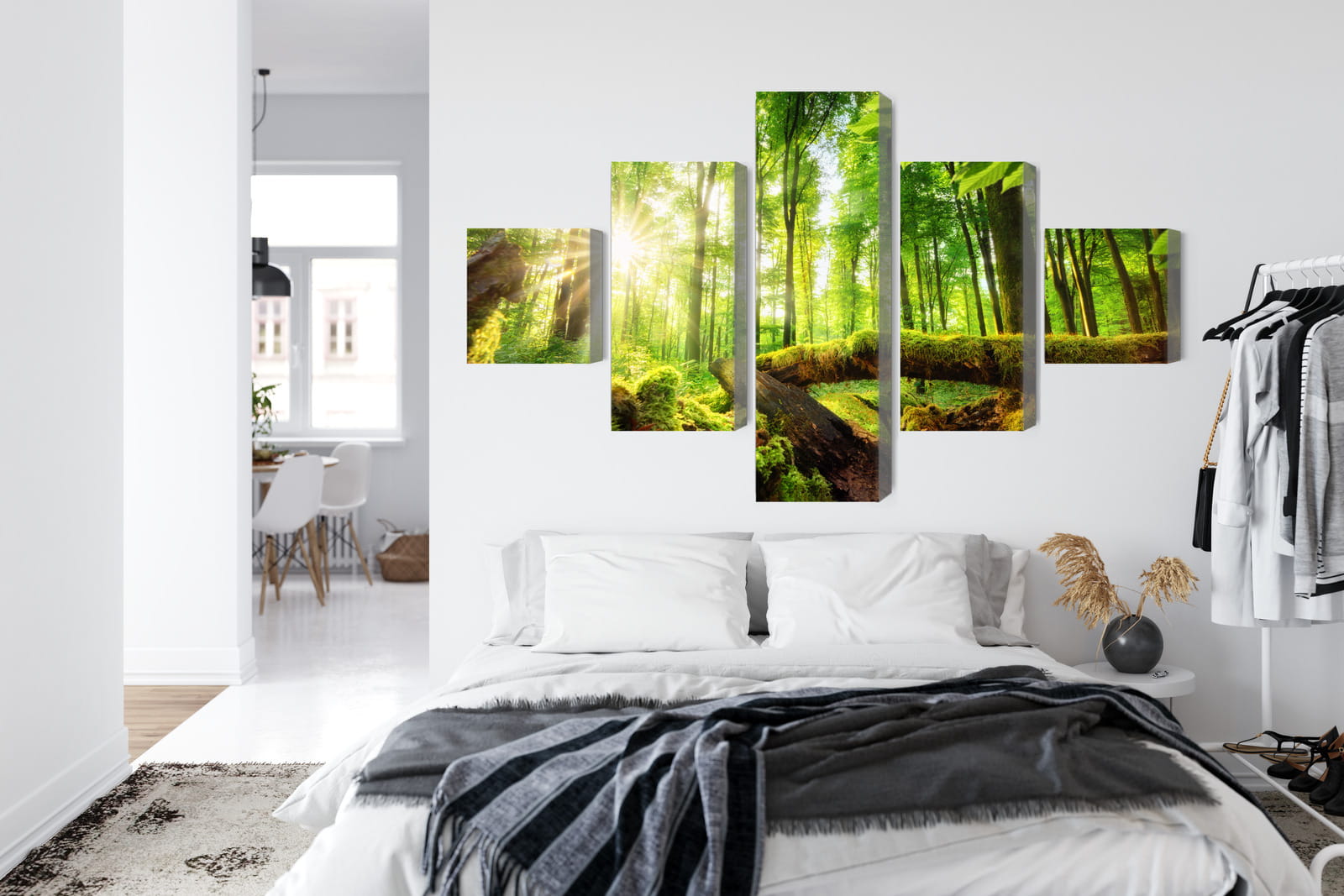 Obraz Wieloczęściowy Promienie Słońca W Lesie 3D