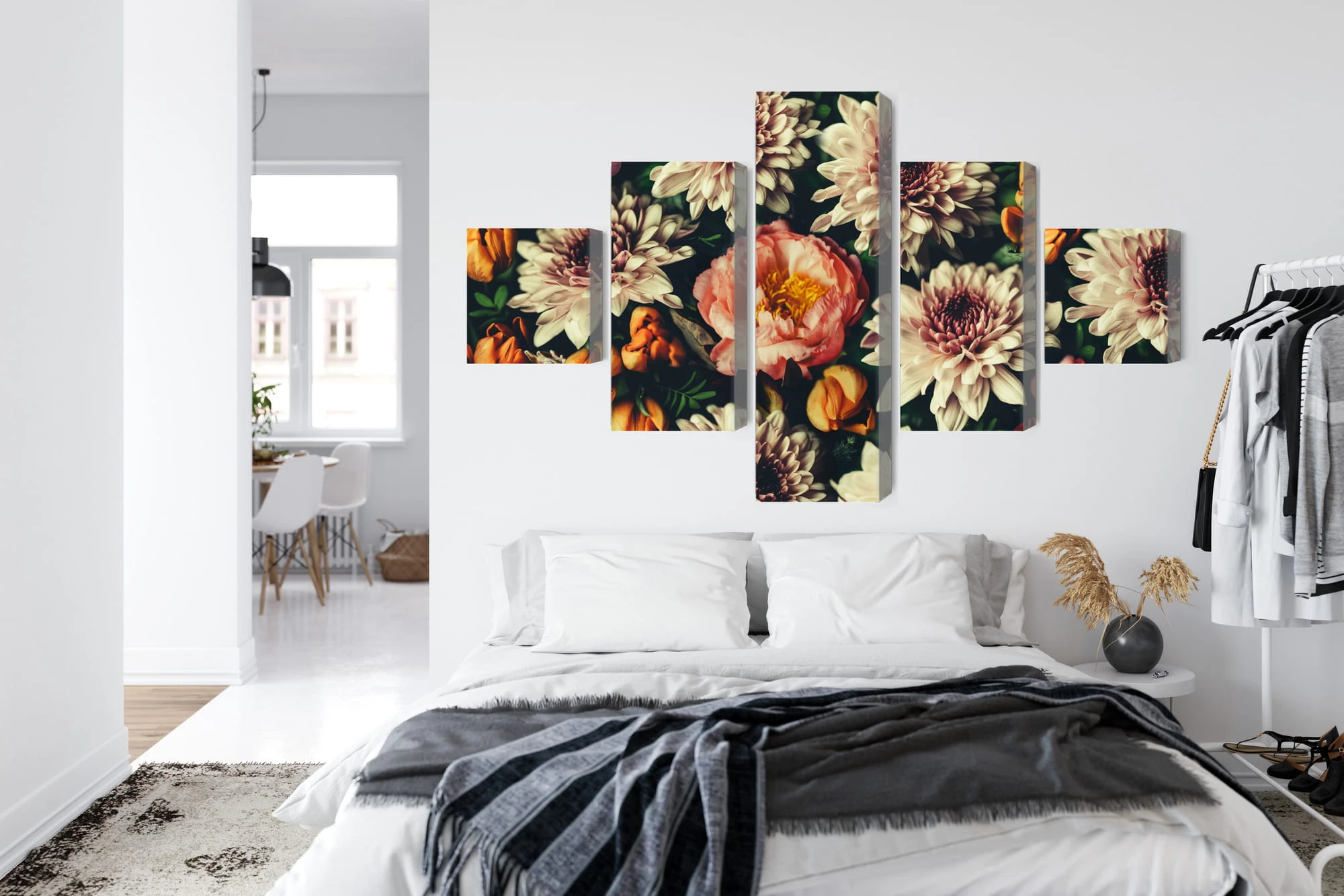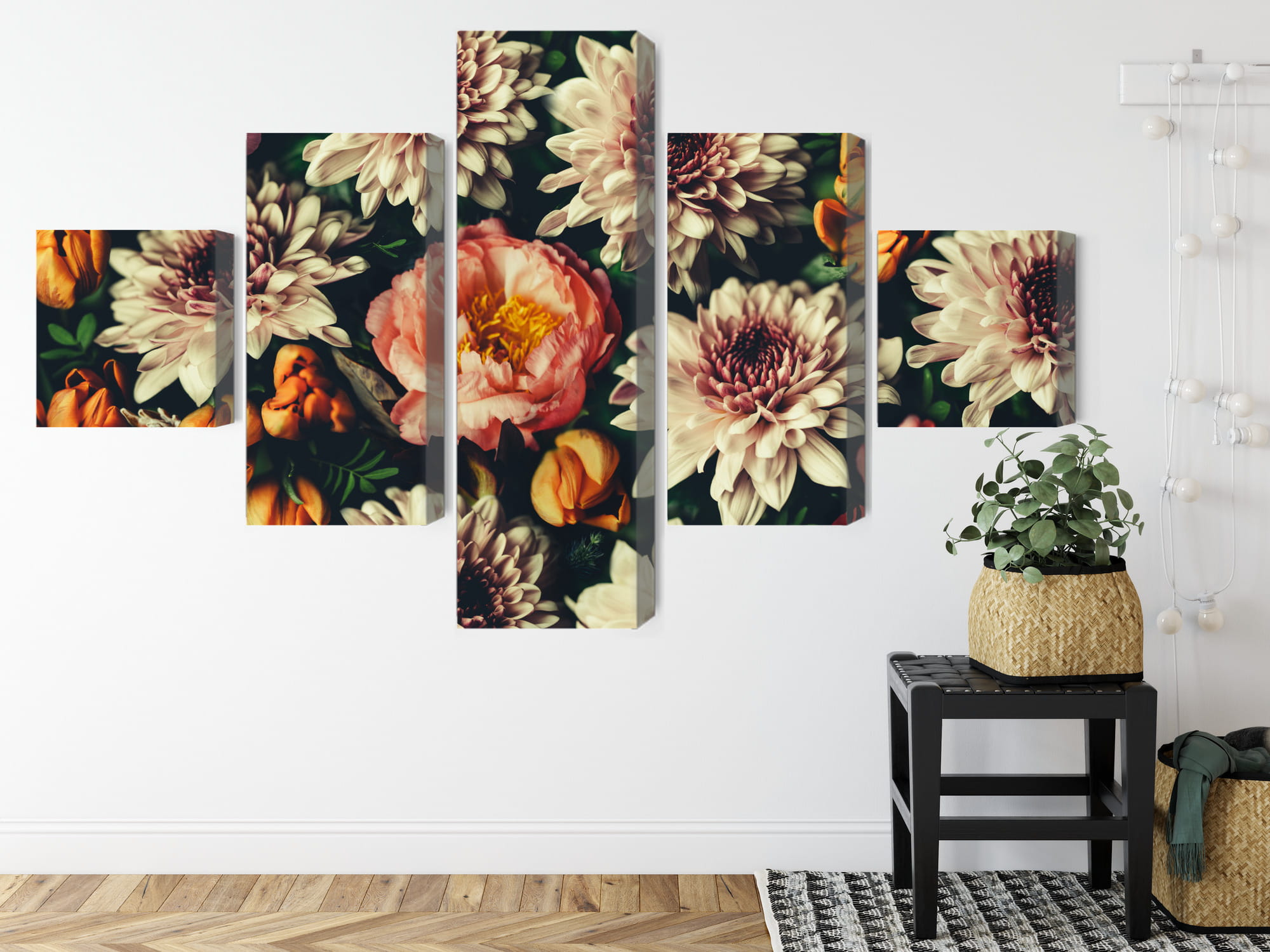 Obraz Wieloczęściowy Różnorodność Kolorowych Kwiatów 3D